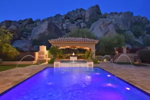 If you have simple floodlight or other basic pool lighting, think about upgrading to LED lights. LED lights can be installed below the water or anywhere in the pool area, and come in all different colors. They make it easy to add your own personal sense of style to your poolscape.