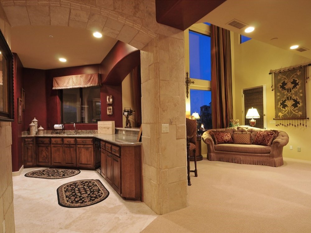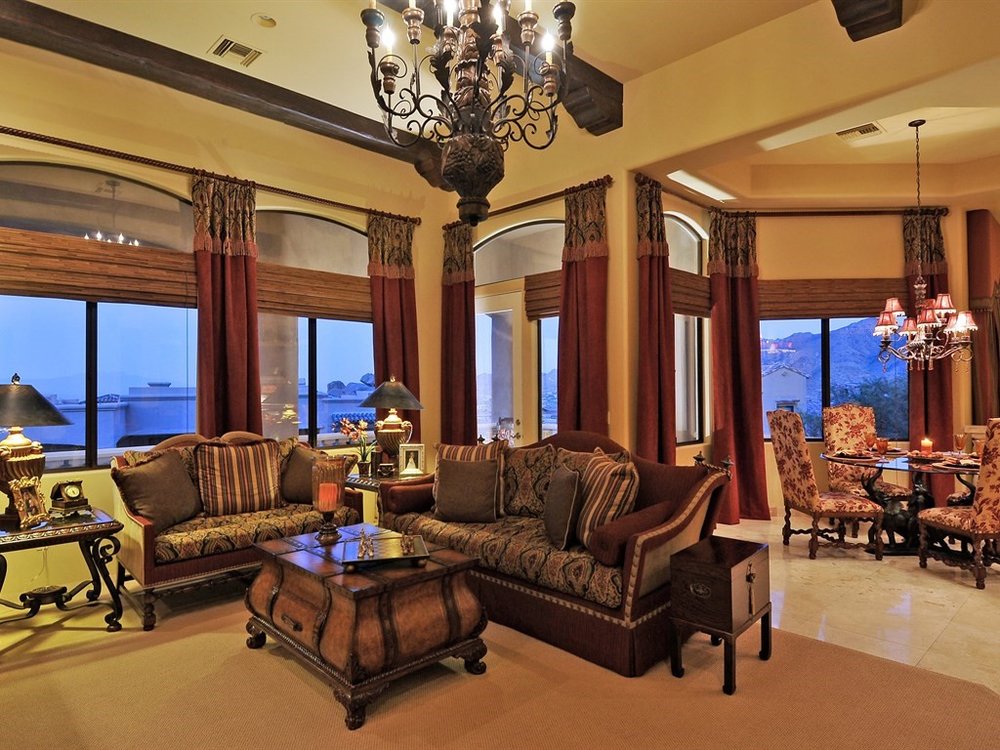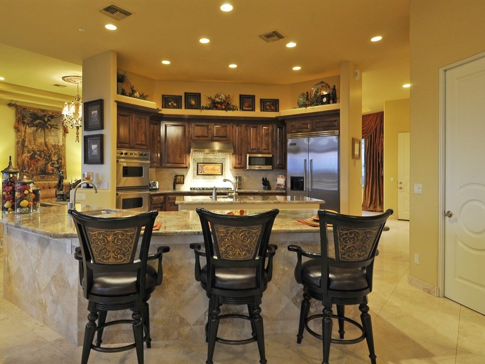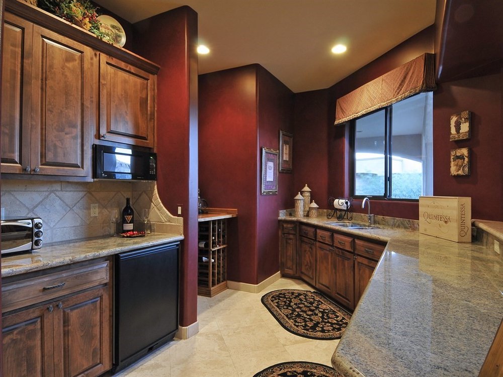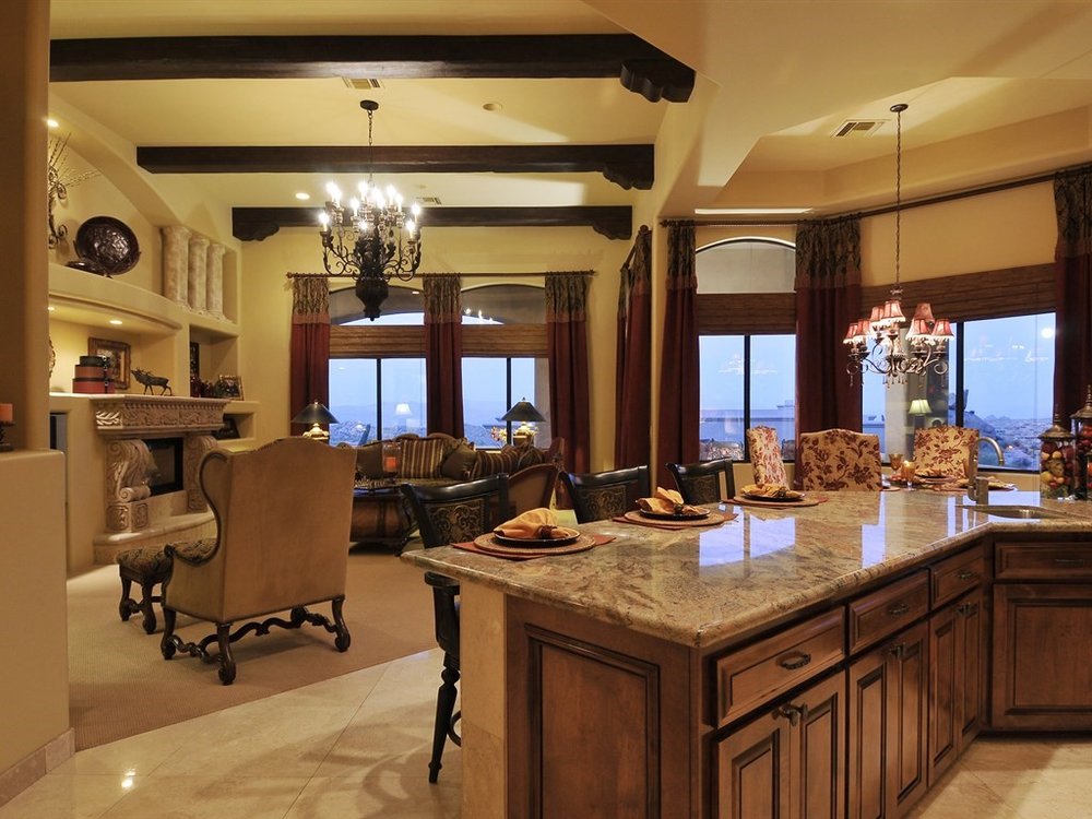 Tucked away in a private cul-de-sac of guard-gated Troon Village, this 5,000 plus square foot home brings luxury and views to the forefront. The panoramic views from the front and rear include Troon Mountain, Four Peaks, and the McDowell Mt. Range. Most furnishings and accessories available by separate Bill of Sale. Luxury abounds inside the home with wood-beam ceilings, polished travertine floors, five fireplaces, grand coved ceilings, granite counters, designer paint, and balcony dining to take in the views. The kitchen, complete with double islands, stainless-steel appliances, and beautiful hardwood cabinetry, opens to the family room and breakfast area for an open and spacious feel. Escape to the cozy front courtyard with hand-laid pavers and a centerpiece stacked-stone cantera fireplace. Or cool off in the rear yard with play pool and negative-edge spa, built-in BBQ, fireplace and fire pit, and lounge areas. The master suite has its own wet bar and courtyard fountain, with a soaking tub and fireplace, double vanities, walk-in closet, and large walk-in shower. Two additional en suite bedrooms and a bonus room with full kitchen/bar round out this exquisite home.
