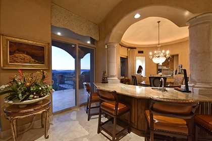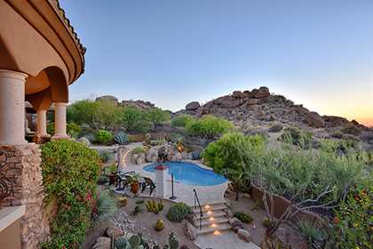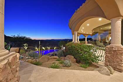 Located in the private, gated community of Pinnacle Canyon at Troon North, this home has all the details to set it apart, from the wood paneled elevator to the SMART home automated control system to the 35 feet of butted floor to ceiling glass.