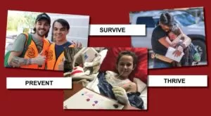 The foundation’s assistance is three-fold. Crisis Care offers emergency financial assistance, transportation needs, meals, lodging, and emotional support at the onset of the incident. Recovery Care aids with ongoing medical needs, peer support groups, school re-entry programs, and camps and retreats for all ages. Thrive Services strive to assist survivors in living their best life, even long after the initial medical trauma. The foundation offers survivors opportunities to serve others, develop leadership skills, become an advocate, and experience community support through social gatherings and events.