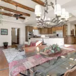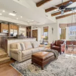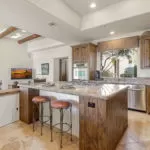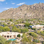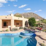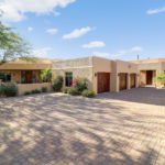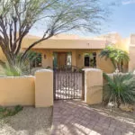 This perfectly sized single-level home boasts over 3,500 square feet of living space with two master suites, guest bedroom, private office and four full bathrooms. Privately tucked away on a cul-de-sac lot, the front courtyard ushers you into the spacious living room that has built-in art niches, a cozy fireplace, and picture windows capturing views of the serene backyard. Throughout the home you will find beautiful custom upgrades such as travertine and wood floors, distressed knotty alder cabinetry, beamed ceilings, neutral paint, chevron-patterned interior doors, and granite surfaces. The kitchen features a temperature-controlled wine fridge, wet bar, center island with curved peninsula, stainless-steel appliances, two refrigerators, countertop seating and it overlooks the dining and family rooms with views of Pinnacle Peak and the backyard. The main master bedroom has a separate entrance into the sitting room with its own kitchenette and en suite bath.