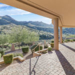 Privacy abounds for this wonderful soft contemporary home in gated Troon Highlands Estates. Located at the base of the McDowell Mountains on an elevated 1.7-acre, cul-de-sac lot with direct mountain views including Tom’s Thumb, the neutral palette throughout includes brand new exterior paint, and wood and tile floors with clean, curved lines. The home was designed to be handicap accessible with no interior steps which boasts oversized hallways, doors, and living spaces. One wing of the home includes a grand master suite with a fireplace and patio access along with a junior master suite with attached bath, small kitchenette, and front courtyard access. The other wing includes two en suite guest bedrooms and a dedicated theatre/media room. The great room opens to the breakfast nook and the chef’s kitchen. Outside, the covered patio extends the length of the home to offer several dining and lounge areas and access to the attached bonus room which would make a great exercise/studio/craft room.