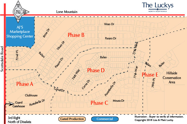 Bellasera is a guard gated community of 360 homeowners and is situated on 290 acres. Approximately 40% of its land is protected wild and unspoiled desert. As a guard gated community, Bellasera provides intimacy and exclusivity to a mere 360 uniquely designed homes. You will find nine (9) different home plans ranging from approximately 1,395 to 3,900 square feet. Smaller floor plans are in the middle (Phase D), and larger homes on the south and east side (Phase C & E). This Del Webb community development in North Scottsdale features a 5,000 square foot clubhouse offering a health and fitness center with separate men and women steam rooms. There are also two lighted tennis courts, a dog park, lighted basketball court, a swimming pool, spa, and approximately 8 miles of jogging and walking trails.
