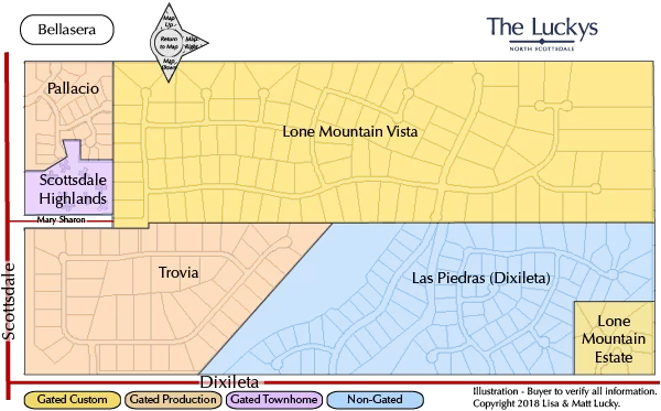The Lone Mountain Area subdivisions, located near Scottsdale and Dixileta Road, are a short drive South to shopping, dining, and the 101 Freeway. Drive North to AJ’s, Summit Shopping Center, Albertsons, and the unique towns of Cave Creek and Carefree. These subdivisions include Lone Mountain Vista, Lone Mountain Estate, Las Piedras (Dixileta), Trovia, Scottsdale Highland Townhomes, and Pallacio.