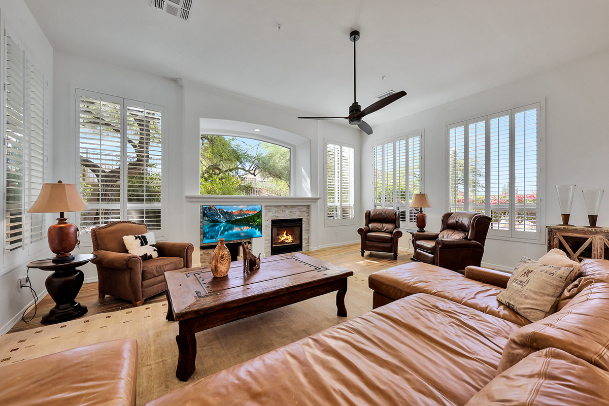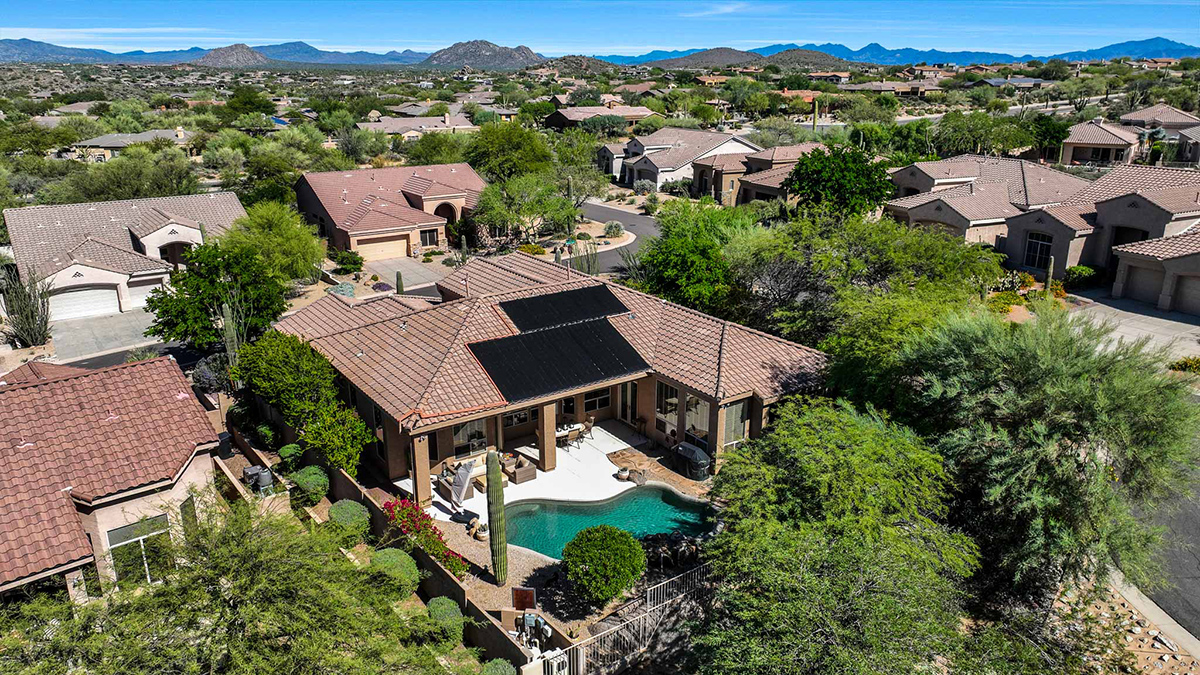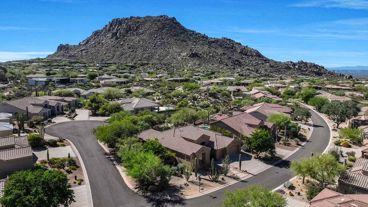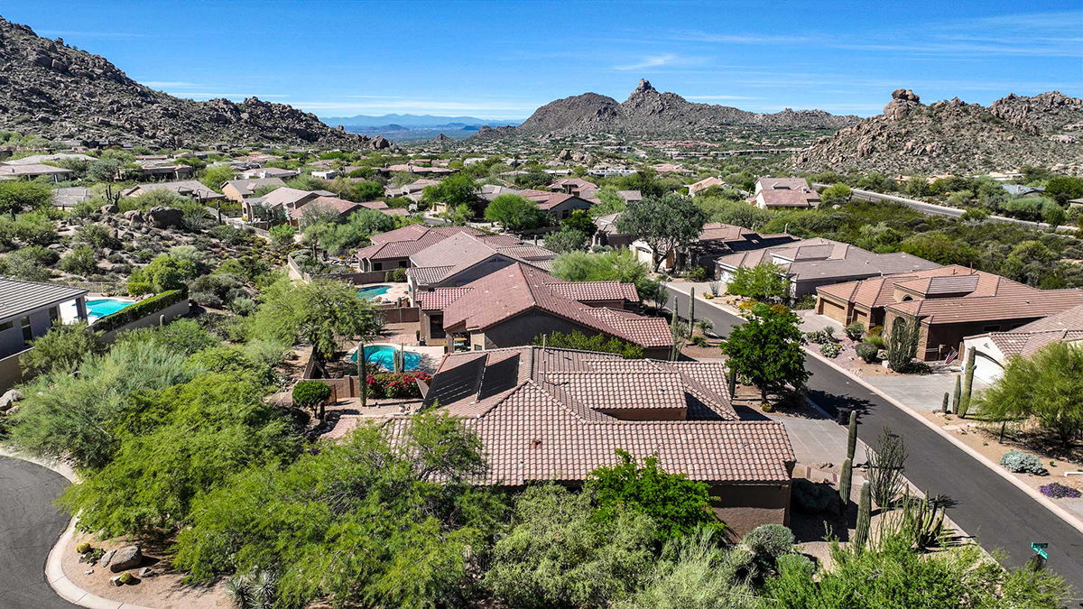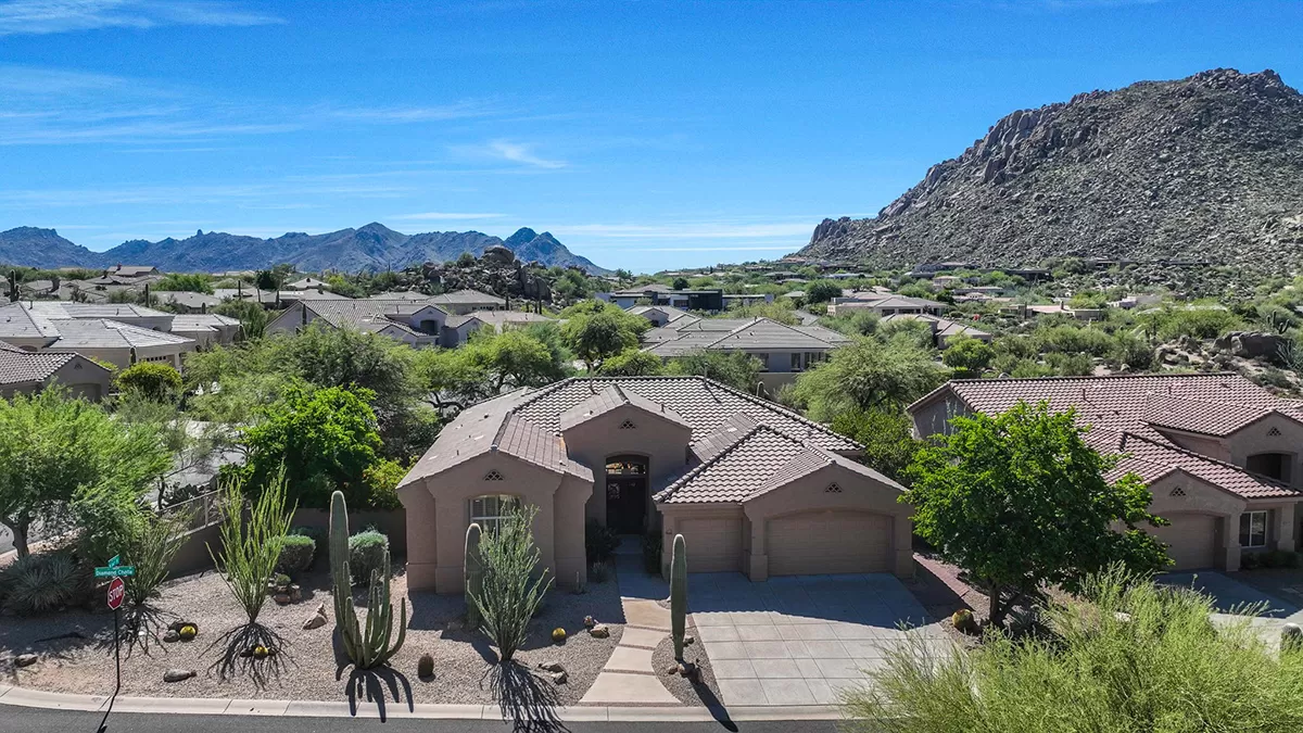 Beautifully remodeled and perfectly sized, this over 2,800 square foot home sits on a desirable corner lot backing to Natural Area Open Space (NAOS) for added privacy and desert views. The expanded floor plan provides additional square footage in the kitchen and family room, creating an ideal flow for everyday living and entertaining. Outdoor spaces embrace the Troon Mountain backdrop with a pebble-finish, heated pool (both solar and newly installed gas heater) featuring a rock waterfall, mature desert landscaping, a fire pit lounge area, covered patio, and low-maintenance yard. Home can be purchased turn-key furnished by a Separate Bill of Sale.