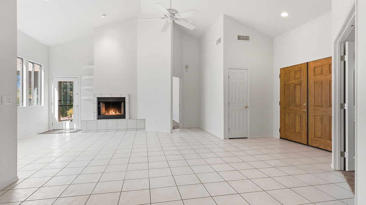 First time on the market in the gated Los Portones community, this hard-to-find 3-bedroom, 2-bath residence features an open floorplan with a cozy fireplace in the family room and brand-new interior paint throughout, including the garage. The third bedroom offers flexibility as a guest room or home office, and the inside laundry is conveniently located just off the kitchen. This home is ready for its new owners to make it their own.
