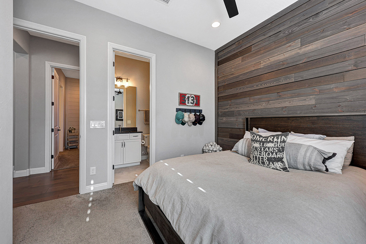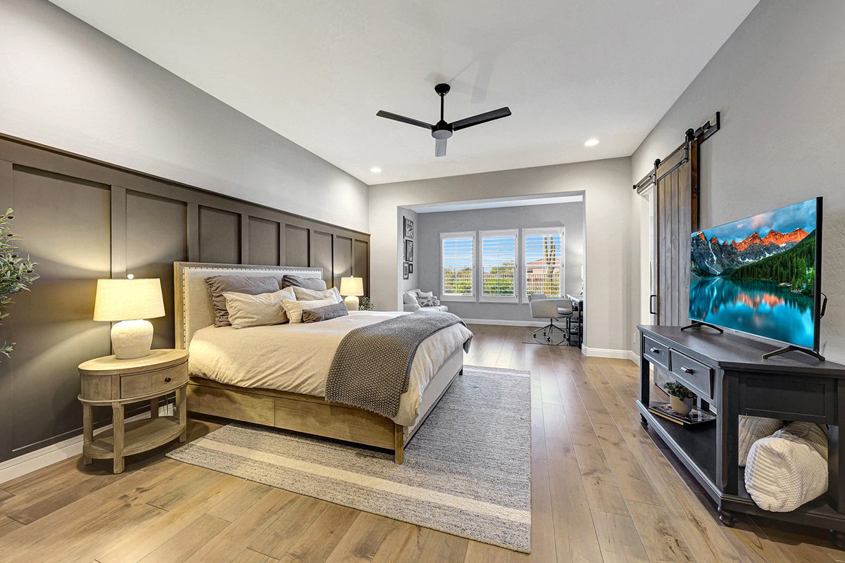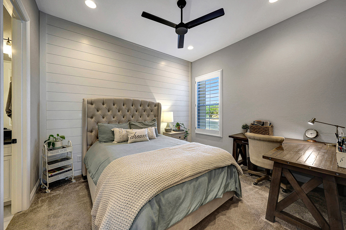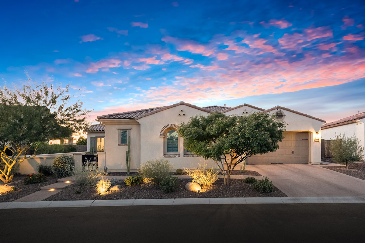 Located in the gated community of Palomino Estates by Pulte Homes, this Santa Barbara-style residence offers 3 bedrooms plus an office & bonus room, 3.5 baths, 3,558 square feet, & a 3-car garage. Built in 2020 and set within an intimate enclave of just 39 homes, it sits on the largest lot in the neighborhood with Natural Area Open Space behind—providing exceptional privacy & picturesque Black Mountain views. A spacious paver courtyard welcomes you into a warm, refined interior featuring wood flooring, new designer lighting & fans, multiple custom accent walls w/ thoughtfully crafted wood paneling, & wood shutters throughout. The flexible floor plan includes an office off the entry, a generous great room with expansive sliding doors, & motorized window shades for indoor & outdoor living for seamless indoor-outdoor living.
