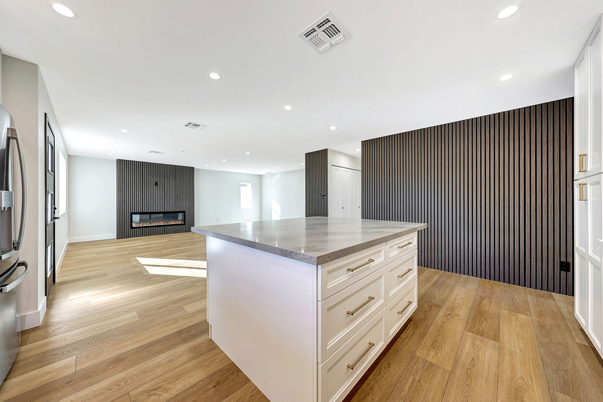 Completely reimagined in 2025, this South Scottsdale home has been transformed into a stylish three-bed, three-bath residence offering 1,825 square feet of modern living and a rare level of detail throughout. Major improvements include a 2023 roof and HVAC system for added peace of mind, along with a two-car garage and updated exterior enhancements. The low-maintenance front yard sets the tone with fresh plantings, a new front and garage door, updated siding, a striking focal-point tree, and paved step entry that enhances the home’s curb appeal. Inside, the great room floor plan is open, bright, and thoughtfully designed for both everyday living and entertaining. Acoustic wall panel accents surround the fireplace and kitchen, adding warmth and architectural character.