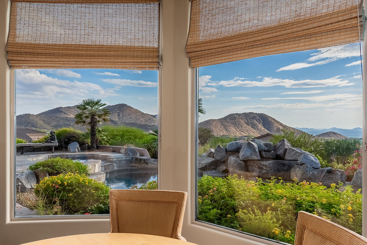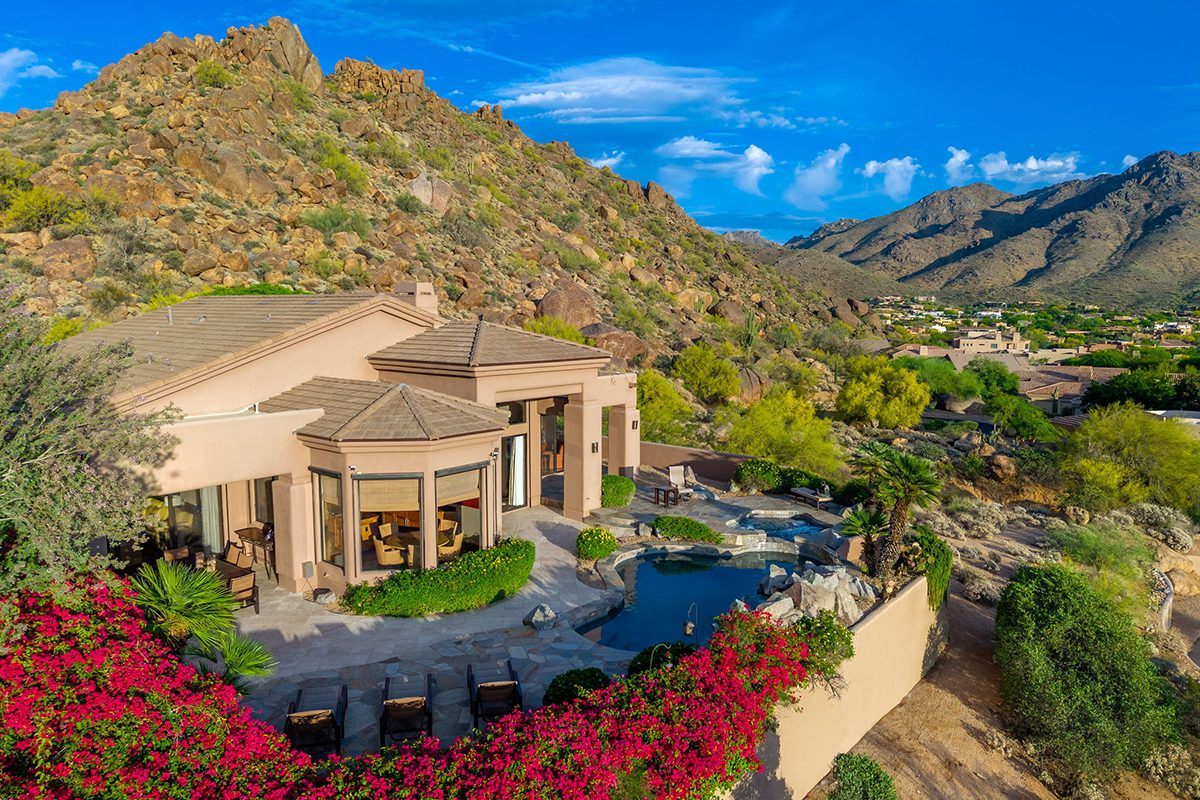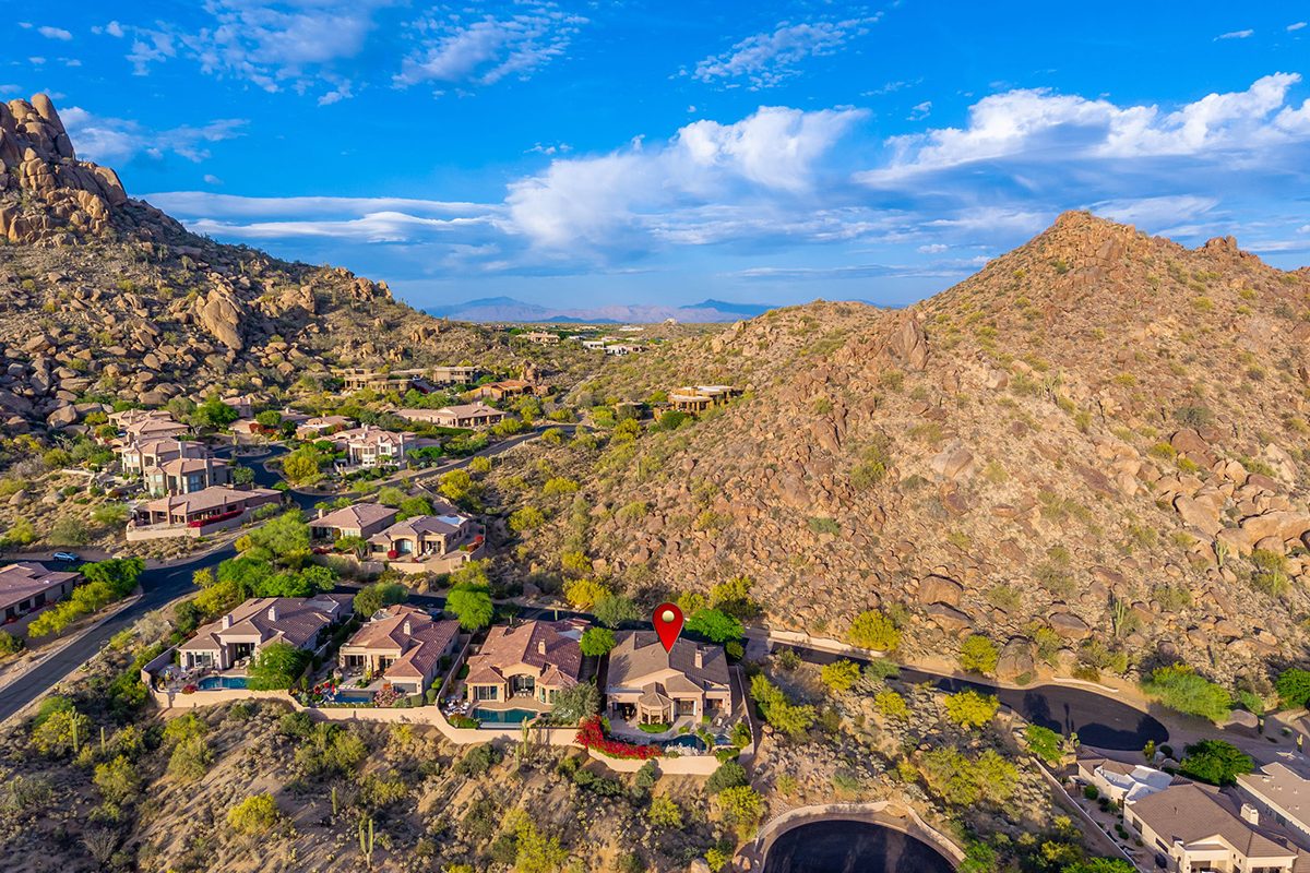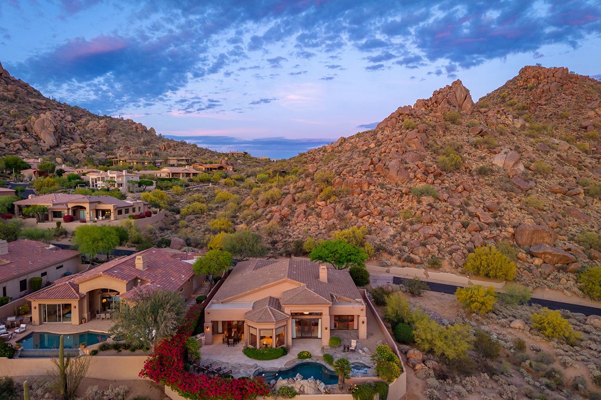 Perched high in the gated Quail Ridge enclave of Troon Village, this elevated residence