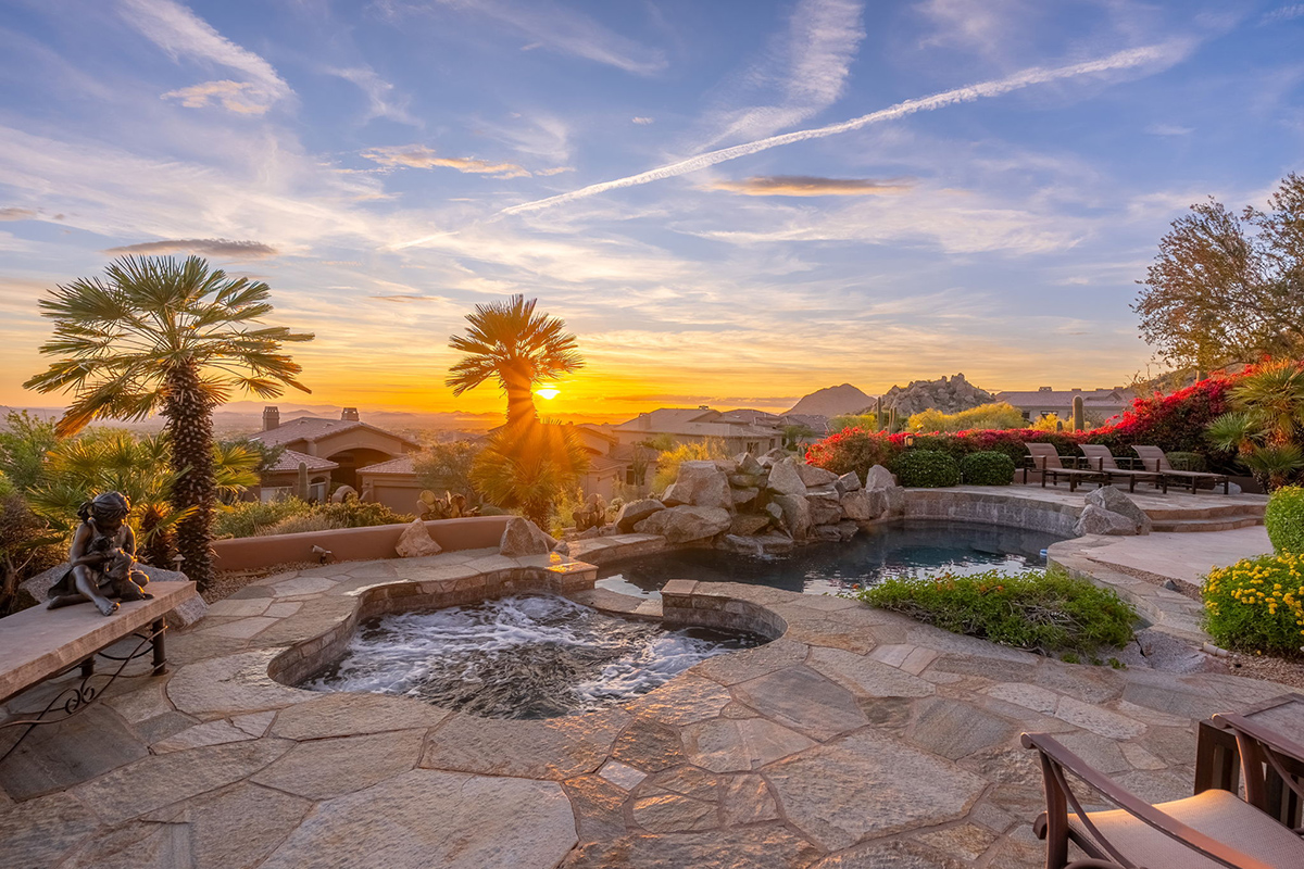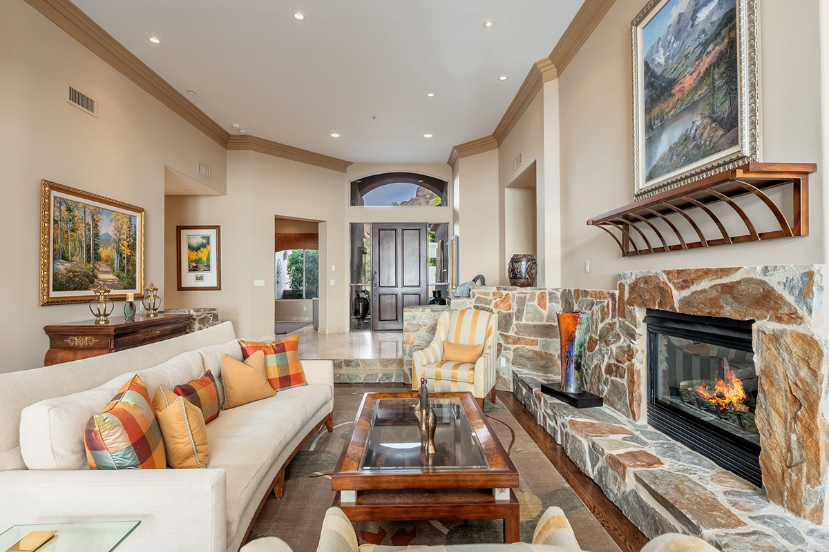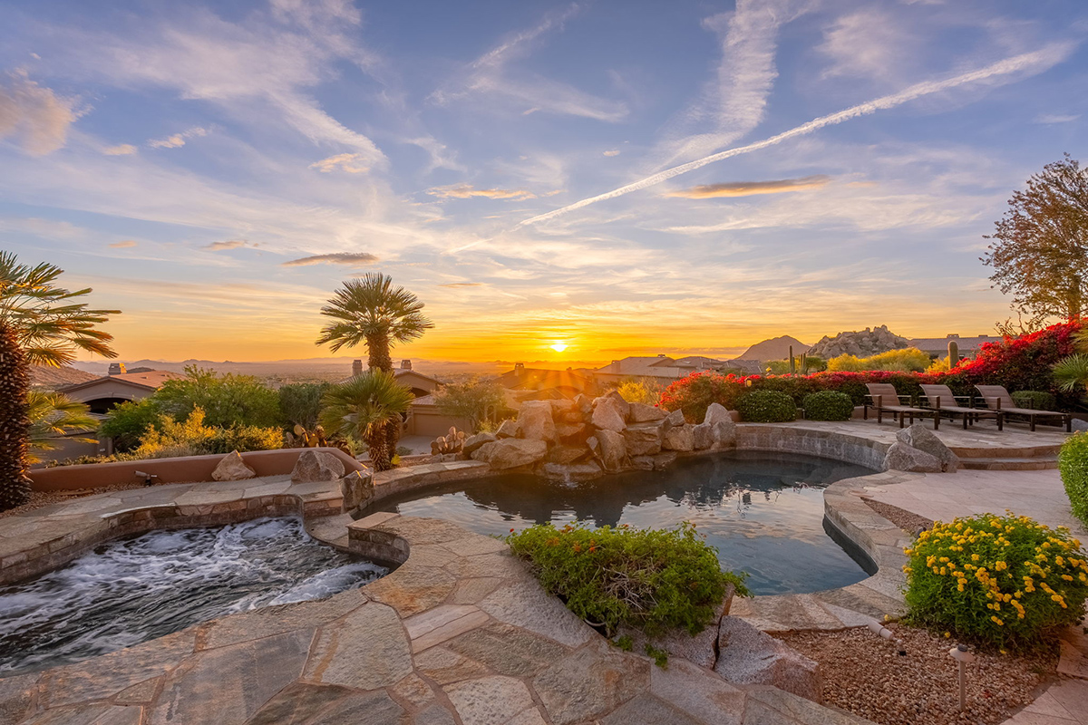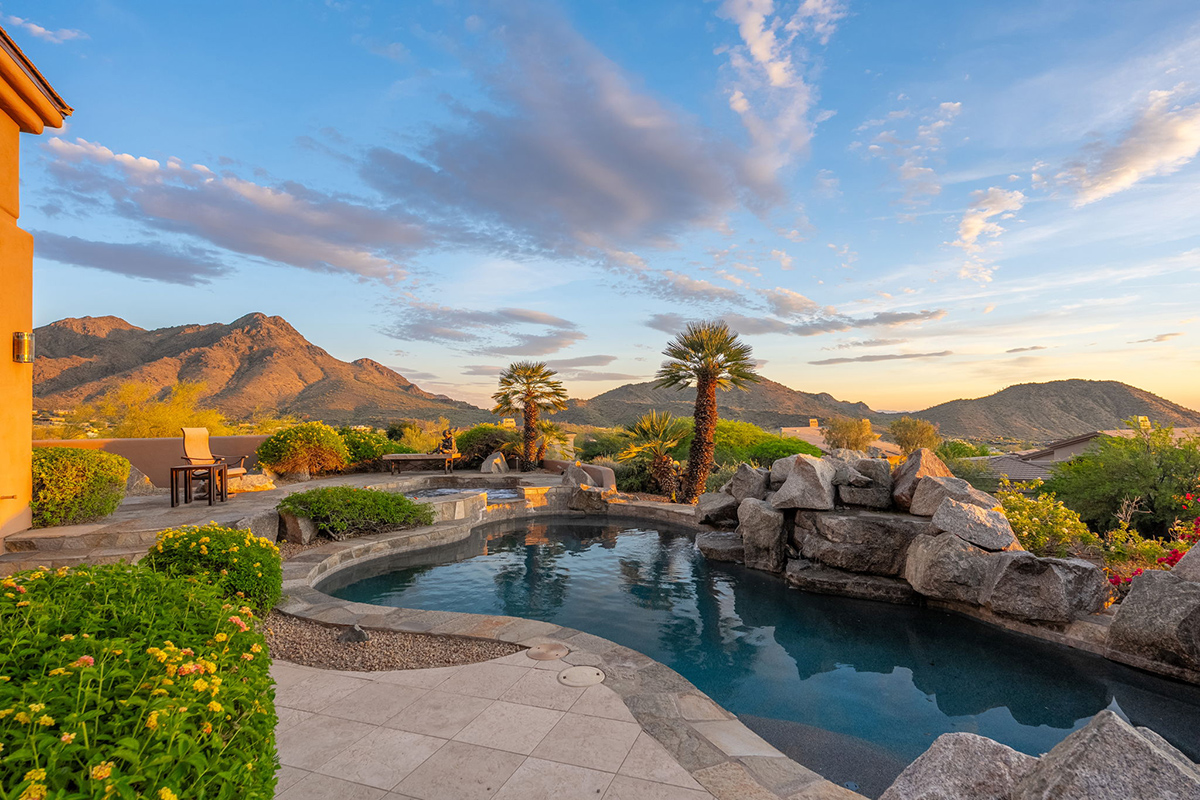 Perched high in the gated Quail Ridge enclave of Troon Village, this elevated residence