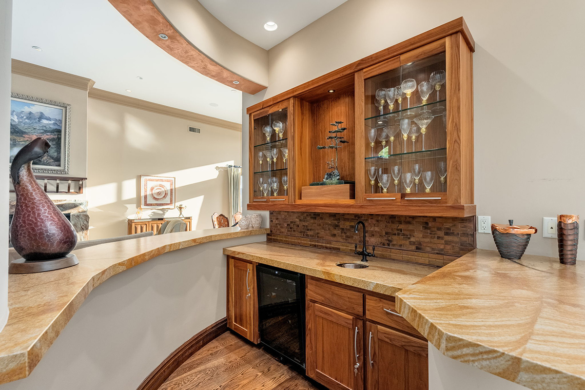 entertaining. A walk-in wet bar enhances the home’s entertaining appeal, while rich finishes