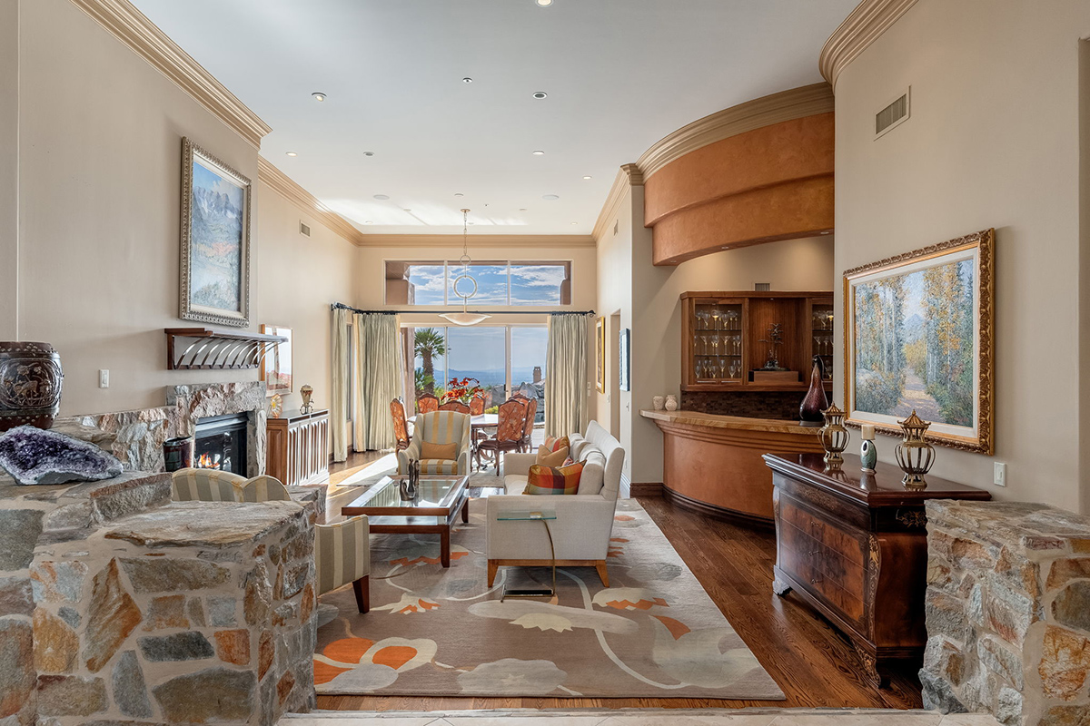 captures unobstructed mountain, sunset, and city light views from expansive windows that bring