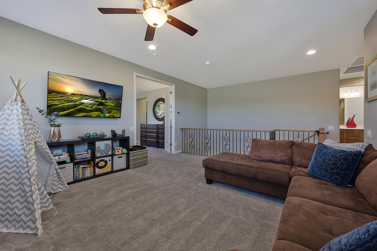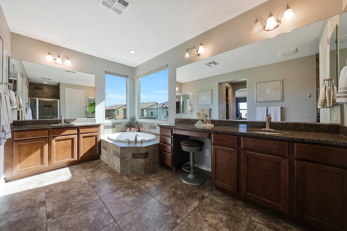 Upstairs, a loft offers flexible living space, while the primary suite features a spa-like bath with granite counters, tiled shower, soaking tub, dual vanities and two walk-in closets. Two additional guest bedrooms and a guest bath offer flexibility. The upstairs laundry has a prep sink and extra cabinet storage.