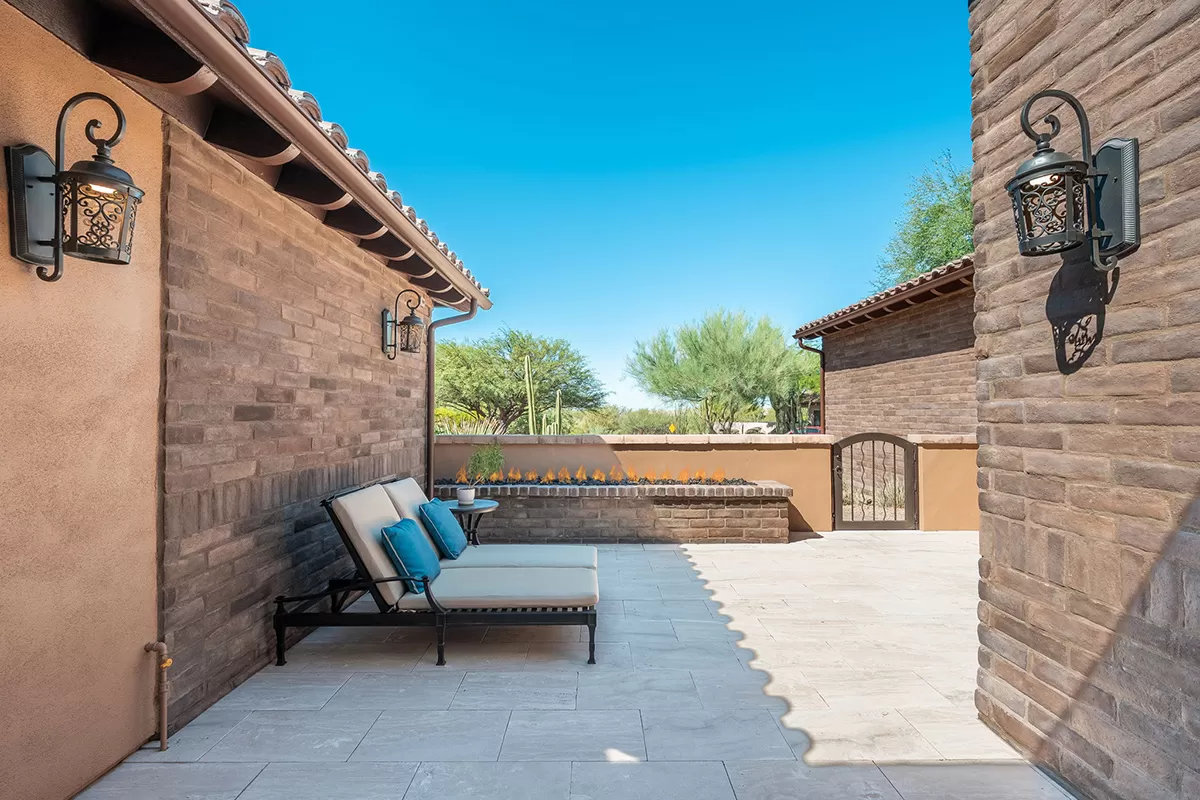 Additional highlights include a generous laundry room, powder bath for guests, 2-car garage with epoxy floors, and a private courtyard with a linear fireplace to capture the sunsets. Beautiful exterior accents include brick veneer, smooth stucco, wood beam headers, and designer paint that blends seamlessly with the natural desert surroundings. This home is move-in ready and ideal as a seasonal lock-and-leave or full-time residence.