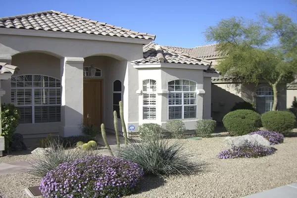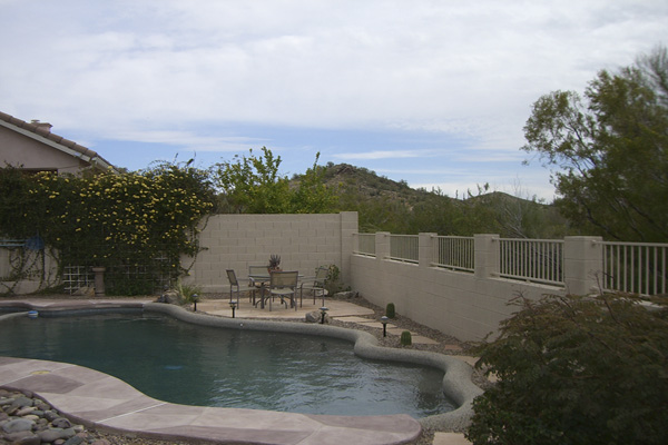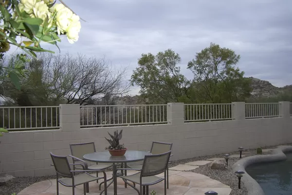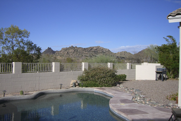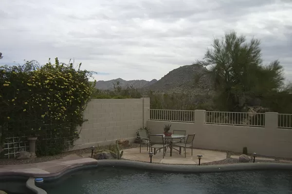 If you’re looking for a view lot… this is it! Exceptional home backs to future Troon North Park with panoramic views of Pinnacle Peak, Troon Mountain, & the McDowell Mountains. Out back enjoy the views by the Pebble-Tec pool & spa from the sunny south facing backyard. Flagstone style decking flows throughout back patio, front walkway & side. Interior includes vaulted ceilings for an open and flowing floor plan. Kitchen has a large island that opens to breakfast nook & family room with fireplace (check out the views!!). Separate Living/Dining rooms with plantation shutters. Views from the Master Suite are incredible!