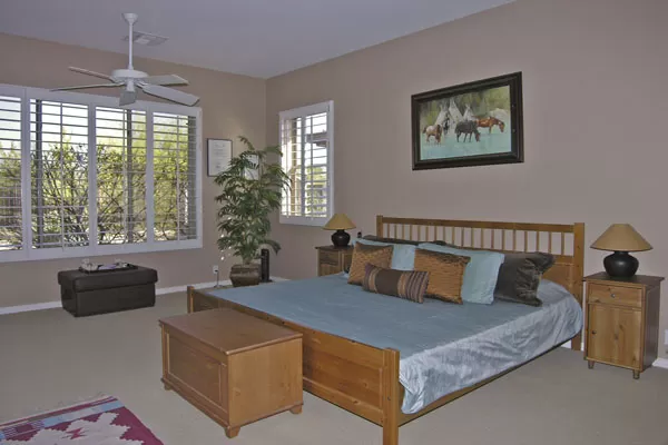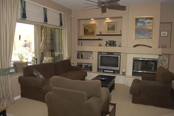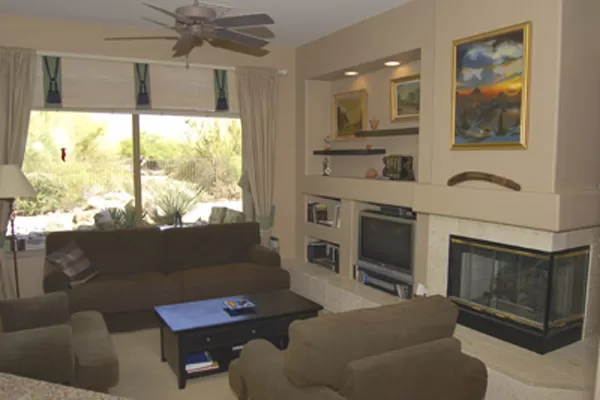 Model perfect home on a terrific lot sets this home apart from the competition. Expanded Prata great room floor plan adds approximately 8 feet to the Master providing room for a sitting or office area. Relax in the backyard and enjoy the soothing rock waterfall, desert landscaping, and private lot that backs to a large expanse of Natural Area Open Space. Upgrades include: stone flooring, granite counters with full backsplash, custom built-in butler pantry, plantation shutters, Energy One reverese osmosis & water softener system, 2.5 car garage with sealed floors and built-in cabinets, & freshly painted exterior. Community Pools, Spa, Fitness, Tennis & more.