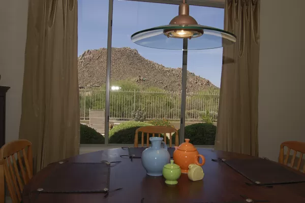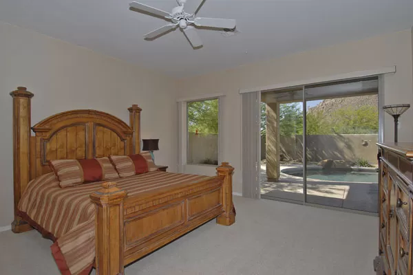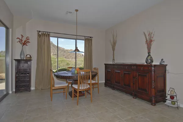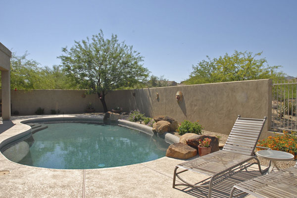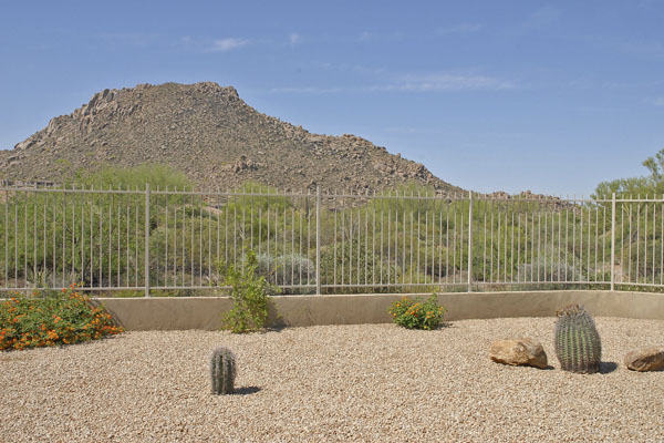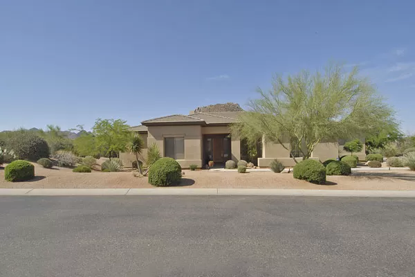 Enjoy incredible Pinnacle Peak and Troon Mountain views on 3/4+ acre lushly landcaped lot. Beautiful 2000 Monterey home in gated community of Desert Summit. It’s very hard to find a newer home on this large of a lot. Enter a spacious foyer that opens to a great room with high flat ceilings, separate formal dining room, den, and gas fireplace with slate border. Kitchen has granite counters with full backsplash and 42in alder cabinets. Master suite has the best views & one of the finest hardwood custom closets you’ll find anywhere! Relax in the best of all worlds backyard with its combination of incredible views, desert landscaping, & south facing heated Pebble-Tec pool.