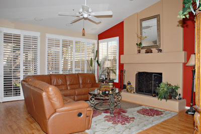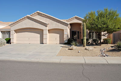 Incredibly charming home with high vaulted ceilings & stunning Pergo wood floors throughout. Great room floor plan with fireplace open to spacious Kitchen & separate formal Dining Room Split floor plan with Master on one side and Guest Bedrooms on the other. Featuring Security System, 3 car garage, phone & cable outlets in every room, freshly painted inside, plantation shutters, neatly landscaped with lots of outdoor lighting, & plumbed for sink in laundry. Covered patio with nice grassy backyard & room for a pool. It is spotless & shows model perfect. Superb North Scottsdale location with easy access to 101, shopping, schools, & restaurants.