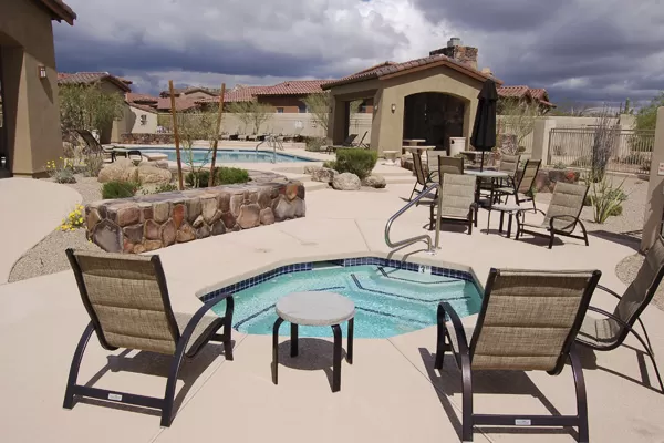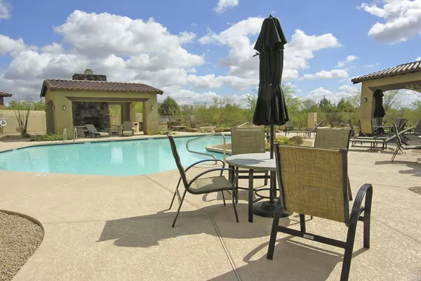 Create your dream home in this never lived in Cachet townhome! Luxury single story townhome features a gated front courtyard, 3 Bedrooms/3 Baths great room plan, & loads of stone like tile. Spacious kitchen with island opens to breakfast room with buffet cabinets and features beautiful granite counters with full backsplash of tumbled tile. Sunny south facing backyard borders NAOS for added privacy, just add your personal touches. Located in the gated community of Solstice at Sevano (78 residences) with heated community pool/spa. Close to The Summit shopping center (walk to Starbucks), new AJ s shopping center, golf, & great restaurants.