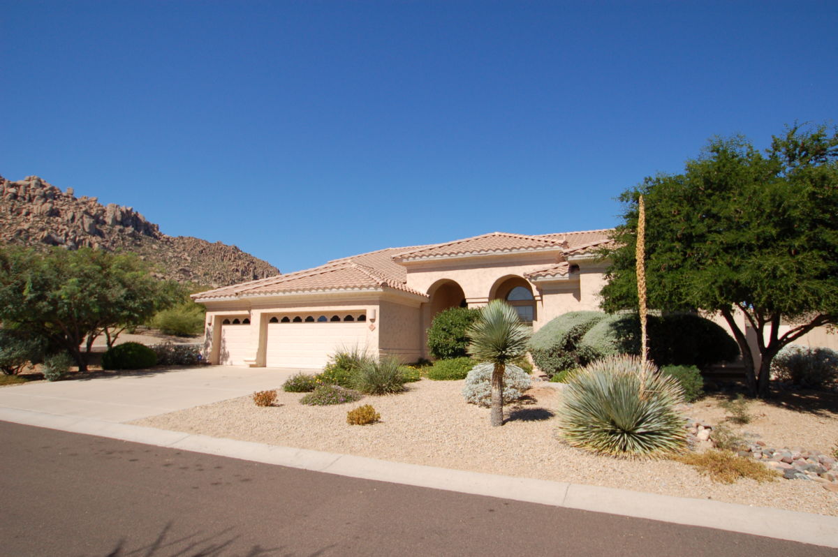 Panoramic mountain & desert views! Totally remodeled 4 bedroom home with brand new carpeting. Gorgeous kitchen with NEW SLAB GRANITE counters, FRESHLY refinished cherry stained cabinets + NEW stainless appliances (gas cook top). Upgrades include plantation shutters, security system, slate trimmed fireplace & more! Master suite offers incredible views of backyard & mountains. Three car garage features rows of built-in cabinets. Stunning backyard with heated Pebble-Tec pool, raised spa & Kiva fireplace all backing to desert preserve! Finest Home within Dorado at Troon Village! Ideal private location offering panoramic mountain and desert views. Recently remodeled 4 bedroom home with newly installed high-end carpeting. Gorgeous kitchen with new slab granite counters, refinished cherry stained cabinets and new stainless appliances. Upgrades include plantation shutters, security system, slate trimmed fireplace, built-in bookcase and more! Master suite offers incredible views of backyard and mountains. Three car garage features row upon row of built-in cabinets. Stunning backyard with heated Pebble-Tec pool, raised spa and a Kiva fireplace all backing to natural desert preserve!