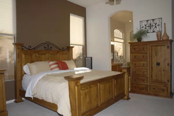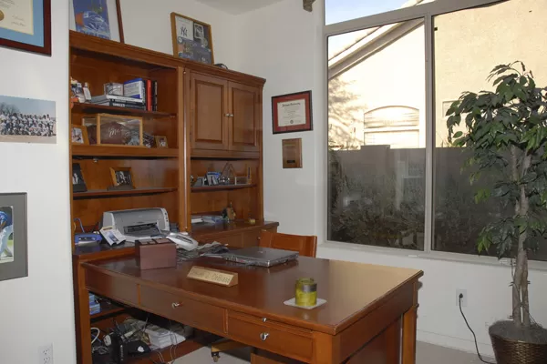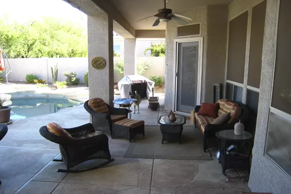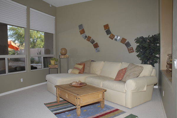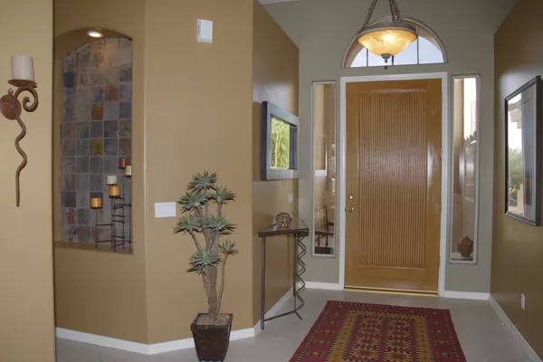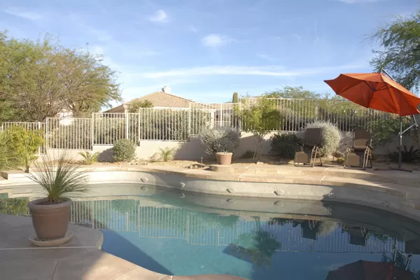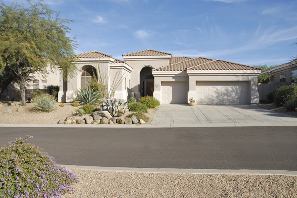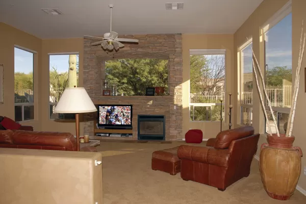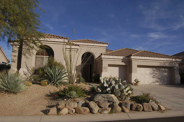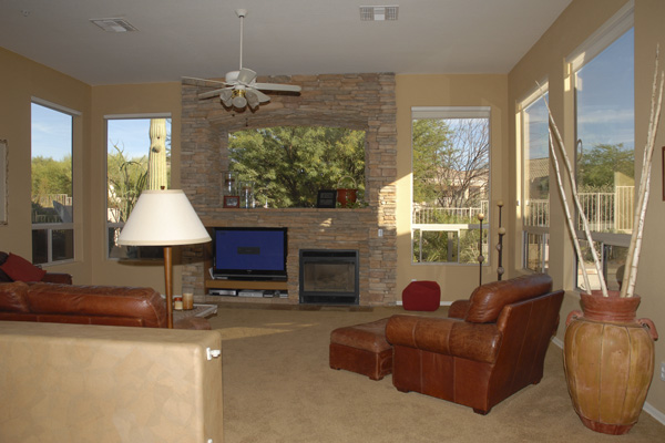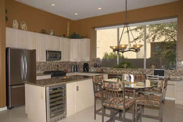 Tastefully remodeled home featuResgranite counters with full designer tile backsplash, S/S appliances, and wine refrigerator added to the kitchen island. Kitchen is open to the large family room with floor to ceiling stacked stone surrounding fireplace and entertainment center. Master bath remodeled with walk-in snail shower. Split floor plan with 3 bedroom + den & 3 full baths (guest bedroom has its own private bath). Backyard featuResPebble Tec diving pool in private desert setting. Home backs to NAOS with unique boulder outcroppings & mountain views.