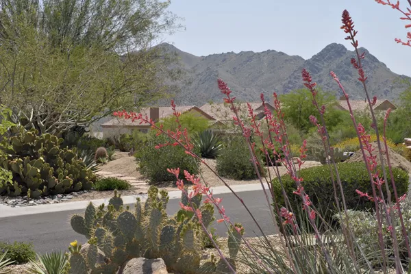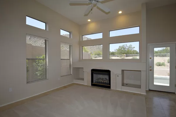 Lovely remodeled home in Troon Village backs to large Natural Area Open Space with terrific VIEWS of Troon Mountain. Sit by your Pebble-Tec pool with rock waterfall to enjoy the views. Kitchen opens to family room and featuees slab granite counters with tumbled stone backsplash & 4 burner gas cook-top. Master & guest baths remodeled with new raised cabinets and slab granite counters. Travertine floors throughout except bedrooms, recently painted inside & out, 10 flat ceilings, and so much more!!! Immaculate and ready for immediate occupancy.