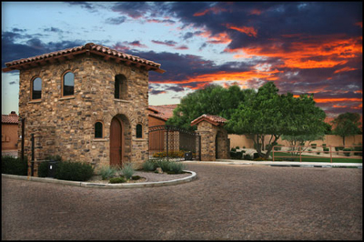2006 Tuscan – gated Villa de Sorano near 101/51, Kierland, Desert Ridge, City North, & Mayo Hospital. Gorgeous designer home with over $400k in upgrades & everything done for you. Exquisite high-end furnishings can be purchased separately. Master, 2 bedrooms & office with seperate enterance downstairs. Tumbled travertine & wood floors, shutters, French doors thruout. Kitchen with slab granite, S/S appliances, & double stacked maple cabinets. Great Room with 16ft ceilings, rustic beams, floor to ceiling stone fireplace, plasma TV with surround sound. Baths loaded with travertine, granite & Kohler. Dining Room opens to charming courtyard with covered ramada, fountain, fireplace & misters. Incredible pool with 3 large waterfalls. Backs to a park!