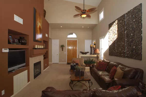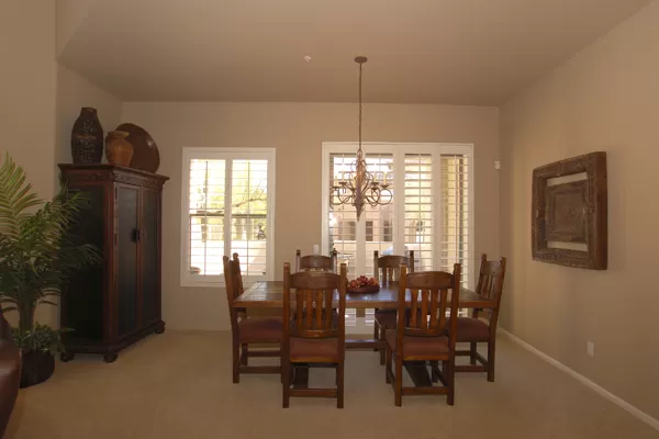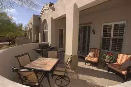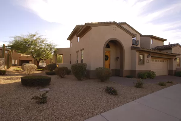 Euro-Tuscan townhouse in Avian at Grayhawk features 2,109 SF, 3 bedrooms, & 2.5 baths. End unit with quiet interior lot- providing privacy & extended back patio for outdoor entertaining. Room for table, chairs, & BBQ on your patio. Volume (2-story) ceilings make the Living & Dining areas open with plenty of room for entertaining. Dining area opens to your covered patio with views to Avian’s common area. Kitchen features granite counters, custom maple cabinets, & breakfast bar. Plantation shutters in every room. Spacious Master Suite with exit to the outside patio, living/dining, attached 2 car garage, & half bath on the first floor. Upstairs small loft & 2 bedrooms with jack-n-jill bath. Exposed aggregate on walkways, drives, & back patio. Refridgerator & Washer/Dryer stay. Guard gated community & all the Grayhawk amenities