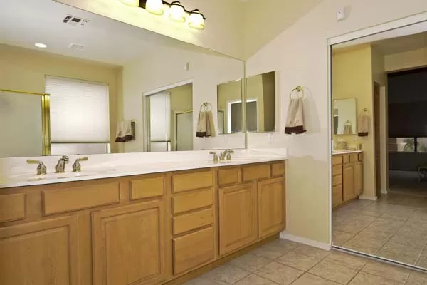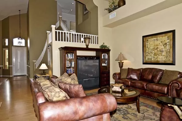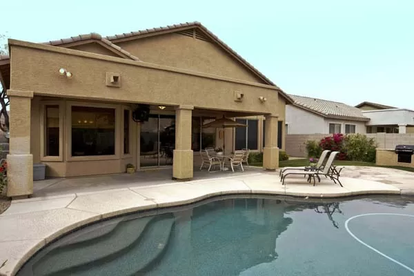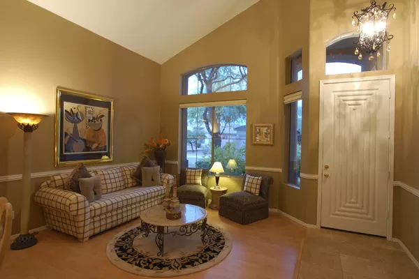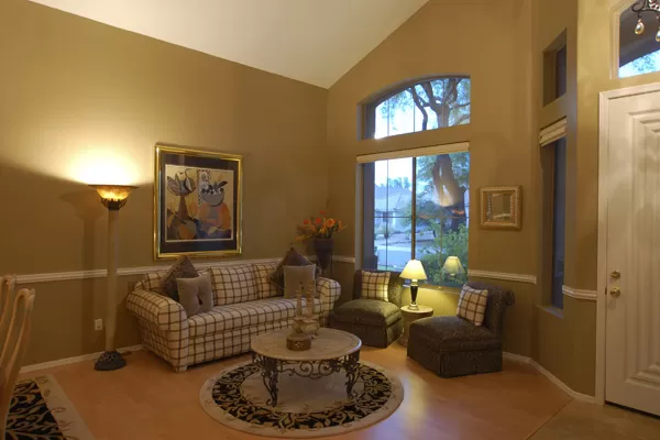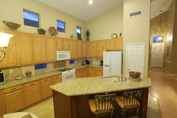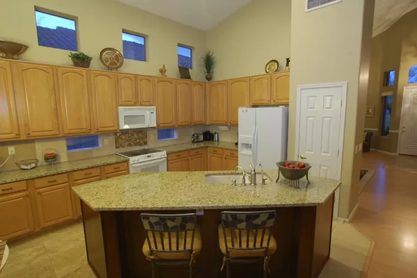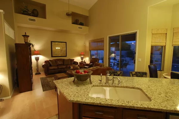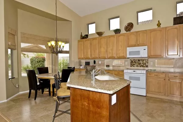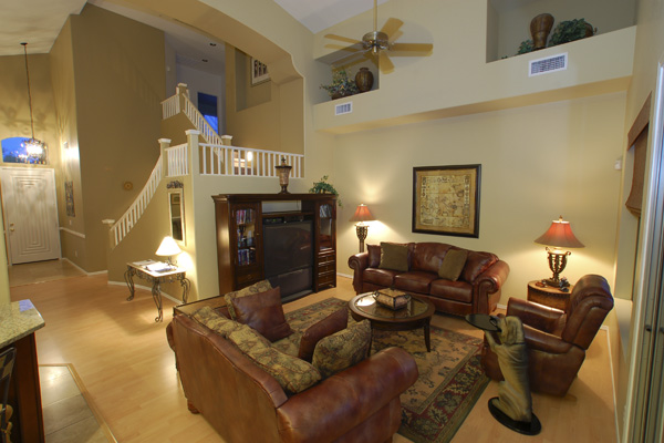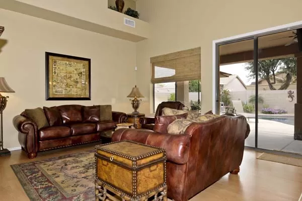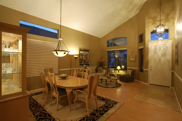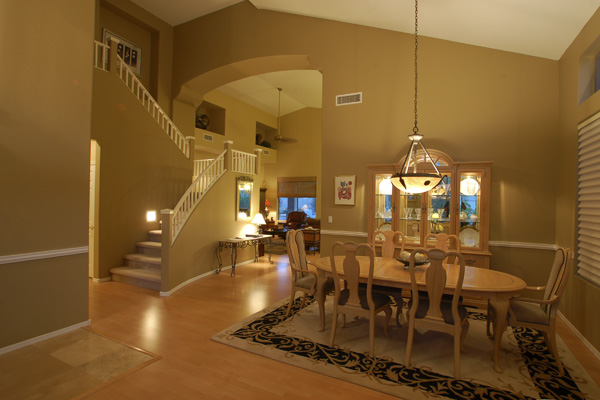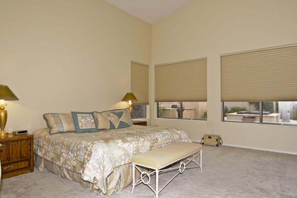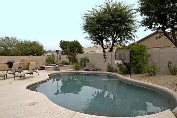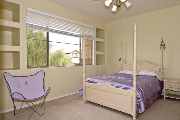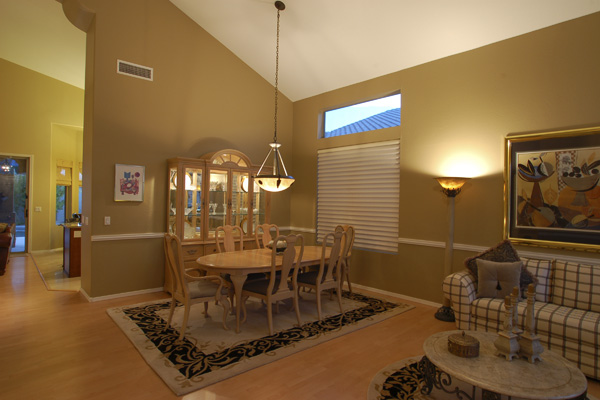 SPOTLESS HOME – Home features 4 bedrooms with Master downstairs, and 2.5 bathrooms. Vaulted ceilings make this home light and bright. Formal living/dining room combination. Kitchen opens to family room and breakfast room. Quiet interior location with sunny south facing backyard with beautiful Pebble-Tec pool, above ground spa, and built-in BBQ. Warm neutral paint colors, granite counter tops, travertine tile, plus custom lighting & window treatments. Close to pocket park/trails. Pride of ownership shows throughout this lovely home.