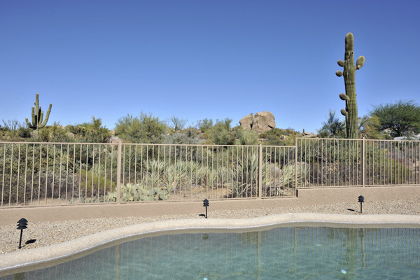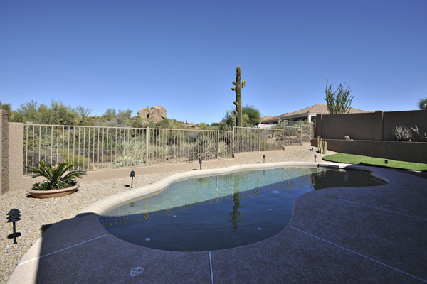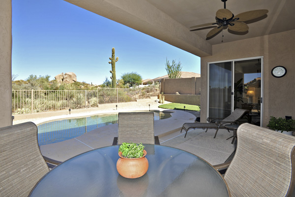 Troon Village home offers outstanding Mountain views in the distance & views of incredible boulder outcroppings & desert floor close up. Enjoy entertaining outdoors by the heated, self-cleaning, Pebble-Tec pool with grassy area. Inside this charming home, the owners expanded the floor plan to include an office. Home features a great room floor plan, 2 bedrooms, Office, expanded laundry, & 2 baths. Updates include granite counter tops in kitchen, crown molding, exterior & interior recently painted, entertainment center added, new hot water heater, newer oversized A/C, Kinetico water softener & reverse osmosis, custom window treatments, shutters, bronze hardware in baths, epoxy garage floors, wood/maple trim added to niches & pony wall, & alarm system. Outstanding home backs to large expanse of Natural Area Open Space for great views!