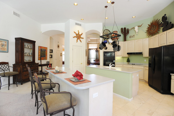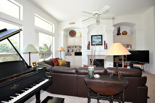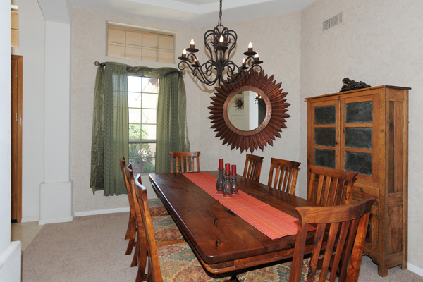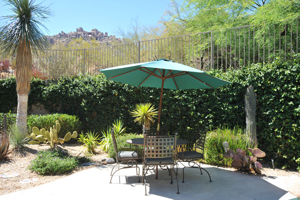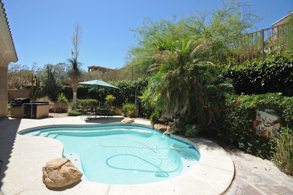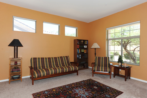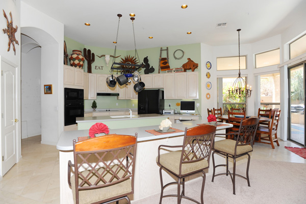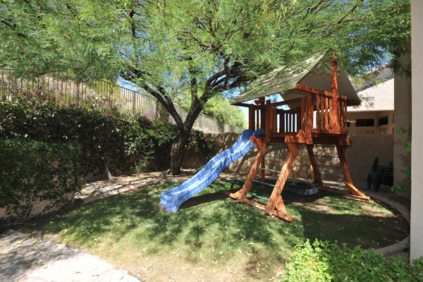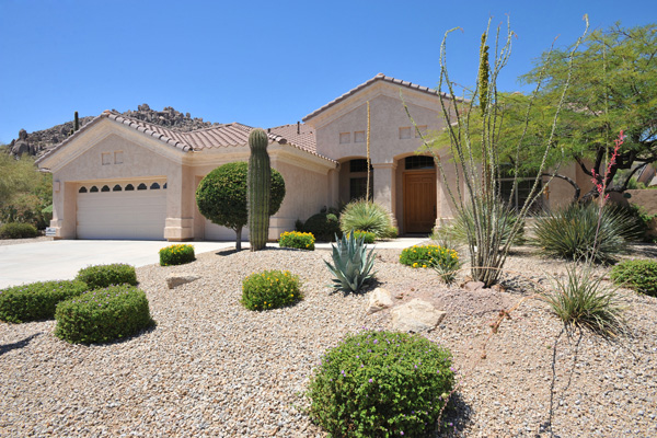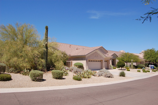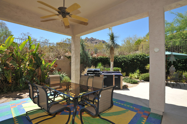 GREAT PRICE IN THE NEIGHBORHOOD. N/S lot with breathtaking views of Troon Mountain. Borders Natural Area Open Space so you only have a neighbor on one side. Beautiful private yard with Xeriscape landscaping, built-in BBQ, & Spool (Large Spa/Small Pool combo). Open floor plan with high 12 foot flat ceilings throughout & large windows that provide beautiful natural light. Separate Living & Dining rooms, plus large kitchen with double islands open to the family room with gas fireplace. Split floor plan with Master on one end & 2 bedrooms & a den (den currently being used as a 4th bedroom) on the other end. Master has his & her walk-in closets. Marble tile and travertinve flooring. This is a warm and inviting home.