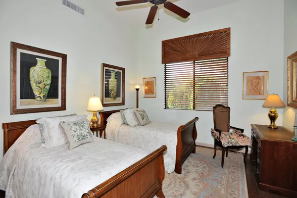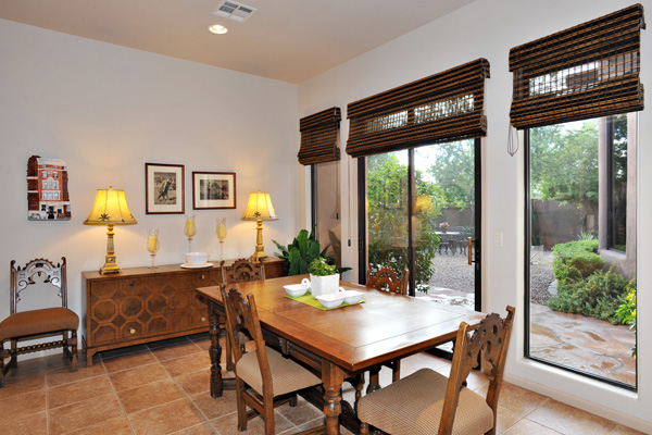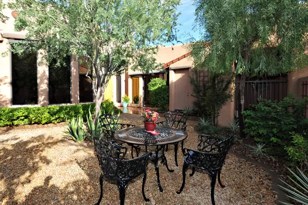 GREAT PRICE on this Columbia home in guard gated Los Vientos in Raptor Retreat at Grayhawk. It is a gorgeous courtyard home with a large private courtyard in the front & covered patio with pool and lawn out back. Corner lot adds curb appeal and privacy. Home features open Great Room floor plan with formal dining room, kitchen opens to breakfast room with French doors to the courtyard, split master bedroom, 2 guest bedrooms, & den/study with hardwood floors. Office has French doors opening to picturesque courtyard to enjoy the fresh Arizona air and blooming flowers. Relaxing backyard has heated lap pool and spa, grass lawn, & mature trees. Great Columbia home with plenty of breathing room, this floor plan is as practical as it is beautiful.