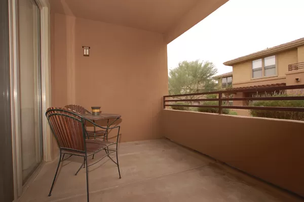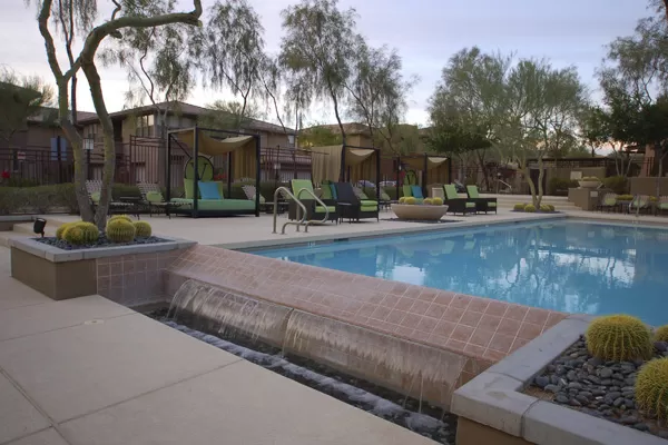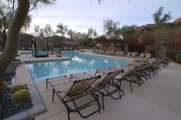 Two-story Townhouse in Grayhawk with 1-car garage. No one above or below. Quiet interior location backing to greenbelt for added privacy. Great room with cozy gas fireplace. Kitchen with breakfast bar opens to great room/dining area for easy entertaining. Coverd patio & half bath downstairs. Large storage closet under stairwell. 2 Master Bedrooms upstairs each with nice walk-in closets. West Master bedroom has Roman tub & french doors opening to a balcony. Upstairs landing has built-in desk. Gated community loaded with luxuries like heated pools/spa, gas BBQs, & fitness center. At the heart of the community is the GREAT ROOM featuring a Movie Theater, Video Game Room, Cooking Demonstration Kitchen, Wine Bar, Concierge Services & so much more. Super location close to the 101 in North Scottsdale