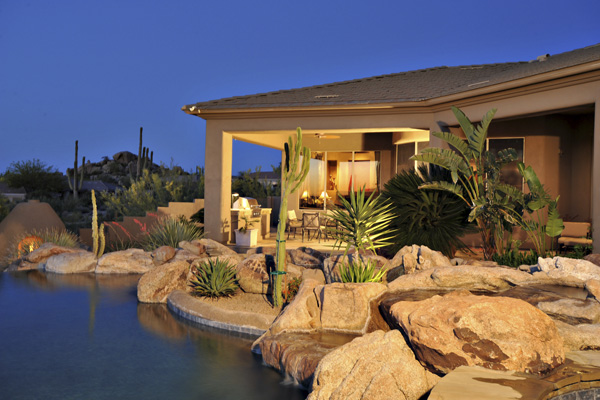 2000 Custom MI Home in Boulder Pass at Troon Village is located on one of the best lots in the area. At the end of the cul-de-sac this home sides & backs to Natural Area Open Space with incredible views of Troon Mountain, Pinnacle Peak, and North to Carefree. Home features 14 ft. ceilings with an open and flowing floor plan. Home has 3,738 sf, 3 Bedrooms each with a private bath, office/study, & 3.5 baths. Meticulous home is move-in ready (very lightly lived in) with many upgrades including travertine floors, granite counters, custom window treatments, wine closet, & extensive lighting. The setting outback is stunning with a 16,000 gallon pool, spa, huge rock waterfall & boulders, built-in BBQ, & fireplace. The view is exceptional!! Most furnishings available by separate bill of sale.