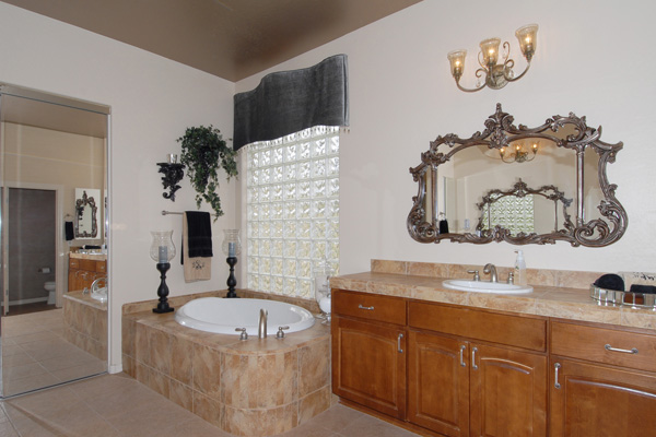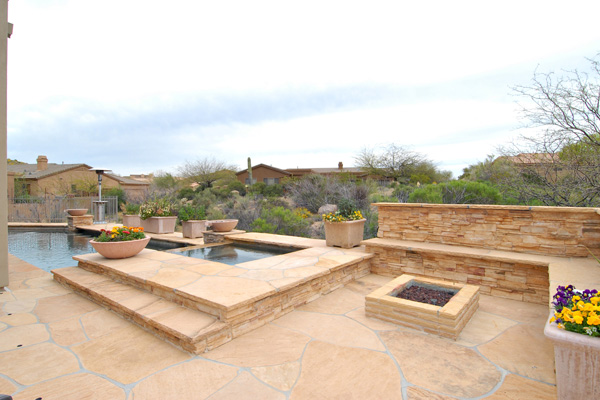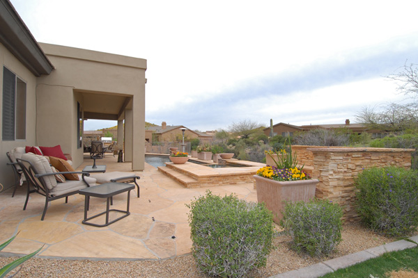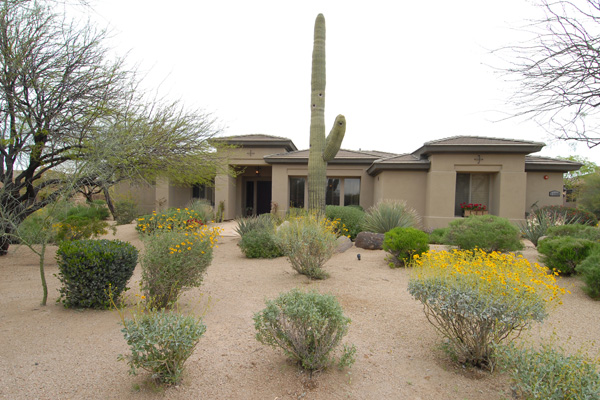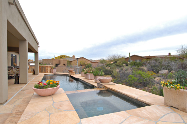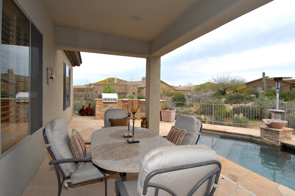 Professionally remodeled & decorated home in the gated community of Desert Summit is a winner!! Located on a quiet interior lot at the end of a cul-de-sac on over a half acre. Beautiful desert arroyo behind home & terrific Troon Mountain views from the front. Featuring 3,426 sf, 4 Bedrooms + Den, 3.5 Baths. Large guest Bedroom with plenty of room for a king size bed has its own private bath. 2nd & 3rd Bedrooms have a jack-n-jill bath. Appointed with flagstone, tumbled stone tops & columns, shutters, beautiful custom window treatments, custom paint, 18″ stone-like tile & wood floors, granite, S/S appliances, & new tasteful light fixtures throughout. Incredible backyard with Pebble-Tec heated pool with bar seats, spa, BBQ, stacked stone bench with firepit, & grass.