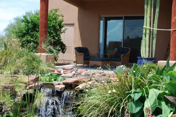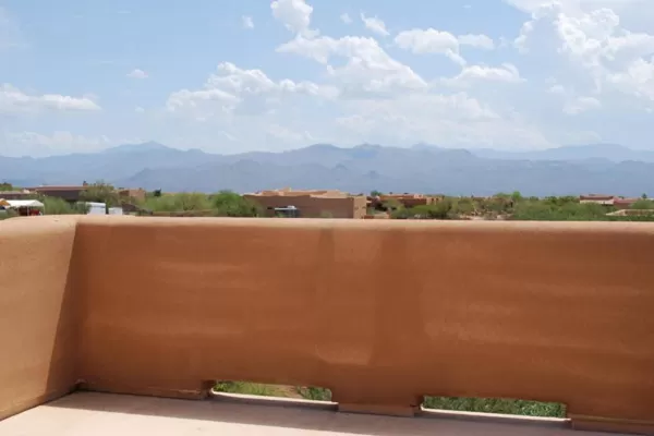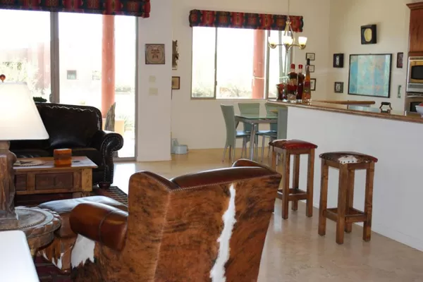 Beautiful home with charming court yard entrance, GREAT ROOM floorplan with 14′ ceilings with wood beams and travertine stone flooring. Open island kitchen with solid granite counters, Knotty Alder cabinets and stainless steel appliances. Two bedrooms plus a den, cozy formal dining room. Cat 5 wiring with Homesmart system. Central Vac. Backyard with fireplace, built in BBQ and Koi pond/water feature. Upper view deck for amazing sunsets and breathtaking views of Four Peaks, Red Mountain, the Superstitions & Weavers Needle.