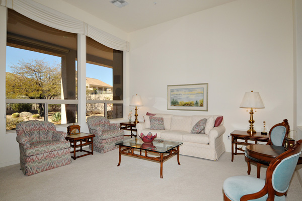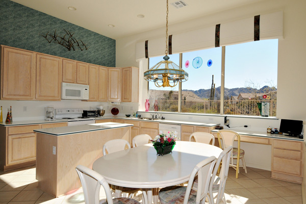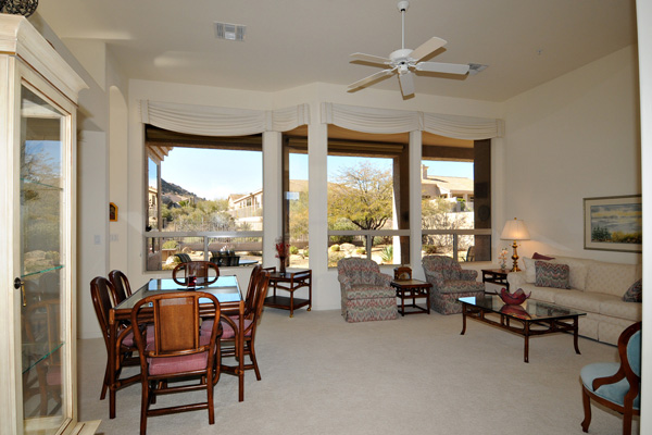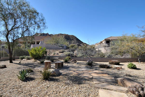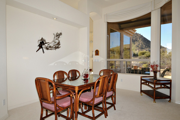 Troon Village home backs & sides Natural Area Open Space (NAOS) providing exceptional views of Troon Mountain & the McDowell Mountains. Spacious quarter acre corner lot provides exceptional views & privacy with only one side neighbor. Home features split floor plan with 2,252 SF, 4 full bedrooms, 2 baths, & 3 car garage. Light & bright with high flat ceilings, large windows, and open floor plan. Family room with fireplace opens to kitchen. Master was upgraded to include bay window with separate exit to the covered back patio. Garage has sealed floors, attached cabinets, & sink. Features 2 electric awnings, security system, water softener, & reverse osmosis system. Pride of ownership in this well maintained home. Large boulder out croppings & stunning views make this neighborhood special.