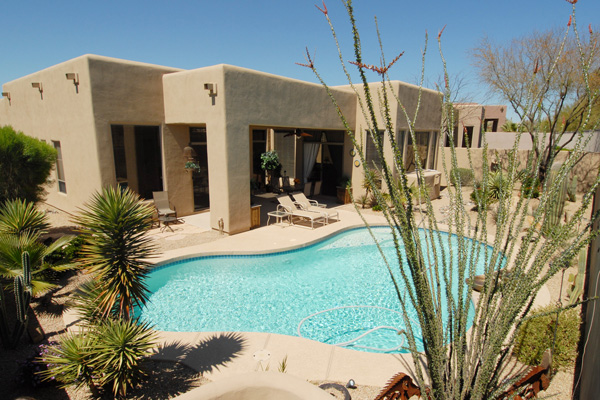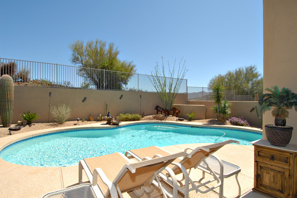 This lovely transitional style home in Troon North is being sold turn-key ready – fully furnished. Home is situated on a premium lot with views of Troon Mountain and the McDowell Mountains. Great Room with gas fireplace opens to kitchen with island. Split floor plan with Master on one end and 2 guest bedrooms on opposite end. High flat ceilings and large windows to enjoy the desert and mountain views. Neatly landscaped both front and back for nice curb appeal. Refreshing swimming pool to enjoy the outdoors. Garage has stained concrete floors, built-in cabs, & water softener. Quiet interior location.