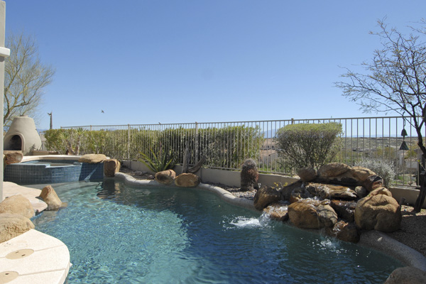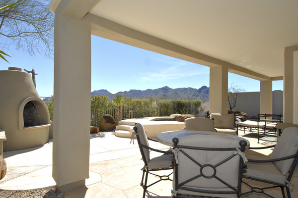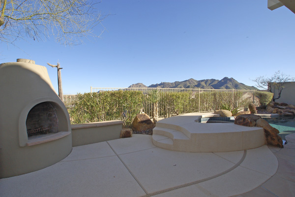 This lovely transitional style home in Troon Village is all about the VIEWS! Can be purchased turn-key with furniture (furnishings from Robb & Stucky/Ladlow). Backyard faces south with exceptional McDowell Mountain views. Home backs to Natural Area Open Space allowing this home to have better views than other homes in the area. Self-cleaning heated Pebble-Tec pool & spa, Kiva fireplace, & BBQ to enjoy the outdoors. Interior features: 2 bedrooms + den, living/dining combo with gas fireplace in living room, 10’+ flat ceilings, & single level home with no interior steps. Great curb appeal with stacked stone exterior and neat landscaping.
