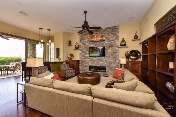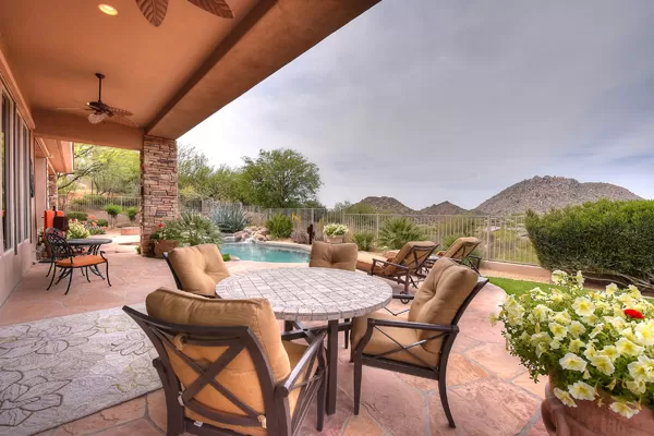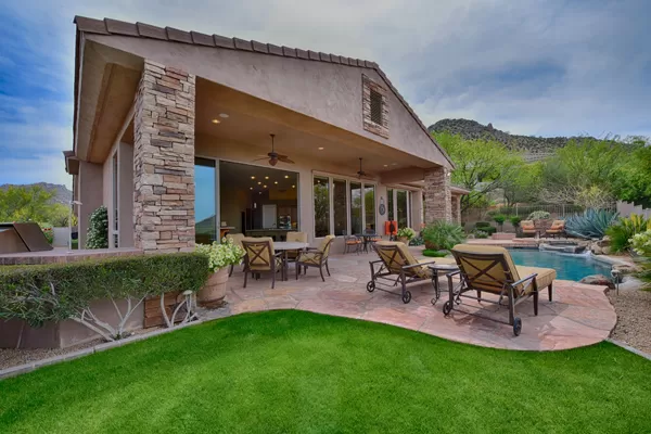 Fantastic Location, Fantastic Value in Prime Location in Troon. Pride of ownership not a short sale or lender owned property! Updated and move in ready. Three bedrooms plus den & second office in master suite, 3.5 Baths in Main house, Guest casita w/ bath off courtyard entry. Three gas fireplaces. Huge kitchen w/ large island opens to family room and large wetbar. Wall of windows takes in the panoramic mountain & city light views. Enjoy your resort like rear yard with heated saltwater pool and spa and built in BBQ. Lush, Mature landscaping with many specimen cactus and plants. You will love the 3 car garage with epoxy/rubber chip floors and lots of built in cabinets. Your pocketbook will love the energy efficient gas home with newer high effeciency Air Conditioners. Rare contemporary style home.