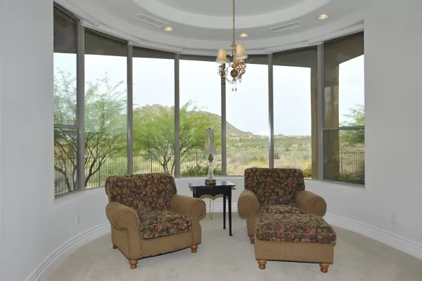 Custom home in Sonoran Crest features outstanding appointments & is situated on an exceptional 2.1 acre view lot with sweeping unobstructed views of Troon Mountain & the McDowell Mountains. Stunning transitional-style home with soaring ceilings and walls of glass to enjoy the breathtaking mountain views. Open floor plan with high flat ceilings features 3 guest bedrooms all with private baths & walk-in closets, office/den, & large Master Suite with spacious sitting area. Family room opens to the kitchen & allows for wonderful entertaining. Beautiful hardwood floors in family room & kitchen. Enjoy Arizona outdoor living with large covered porches, a negative edge Pebble-tec pool, raised spa with water feature, fire pit, 2 grassy areas, & built-in BBQ. Great value in the neighborhood.