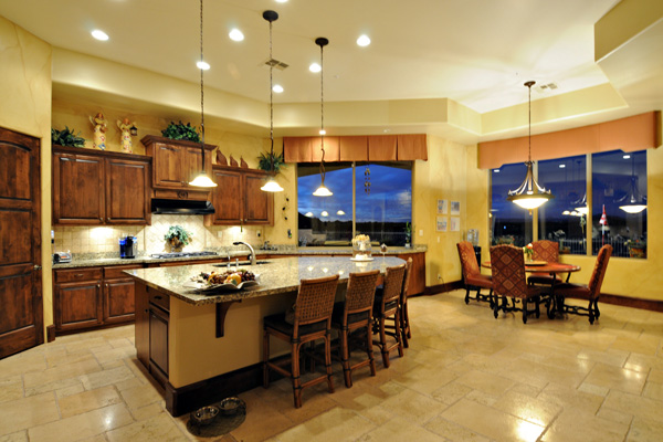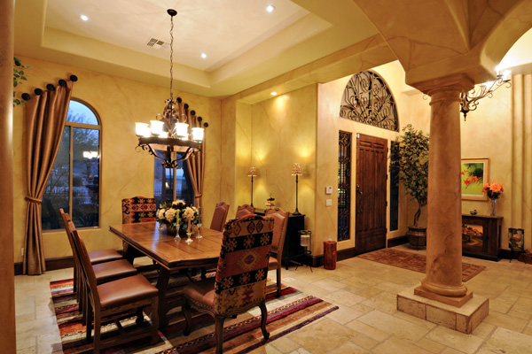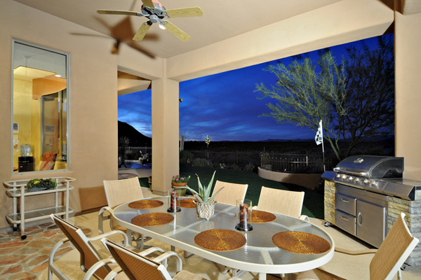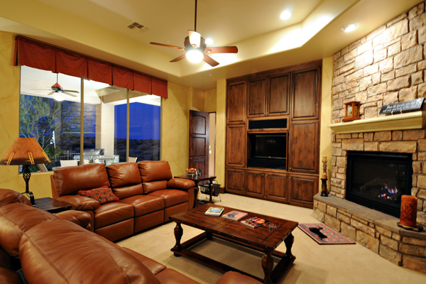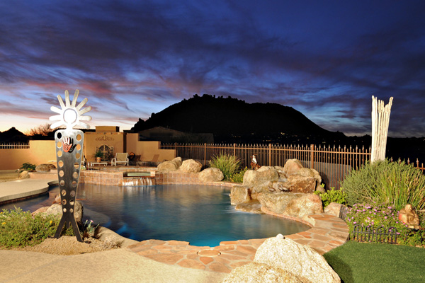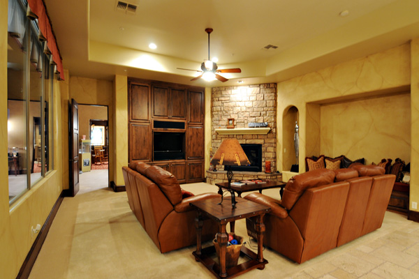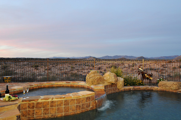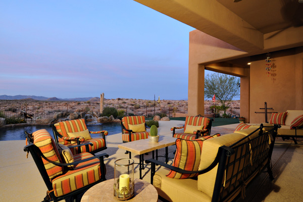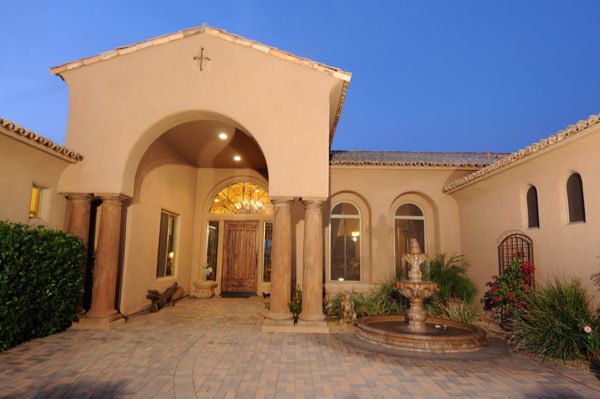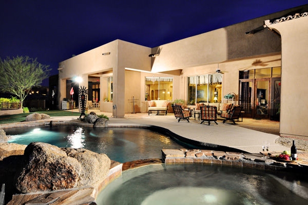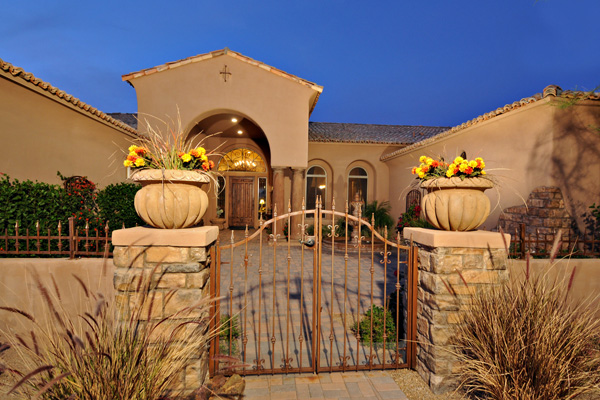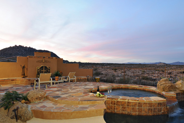 Beautiful custom home in gated Sonoran Crest on 2.1 acres has endless mountain views in all directions!! Flowing three tiered fountain in lush front courtyard with brick pavers set the tone for this well designed and finished home. Spacious and flowing floor plan includes 4 bedrooms, exercise, home theater, and game room all on one level with no interior steps. Exceptional home theater is fully equipped including wall mounted 100 inch screen & 8 leather theater seats. Spectacular outdoor living with large covered patio running the length of the home, Pebble-Tec pool/spa with rock waterfall, wood burning fireplace, and 3 hole putting green. Completed in 2005, this is a fabulous entertaining home.