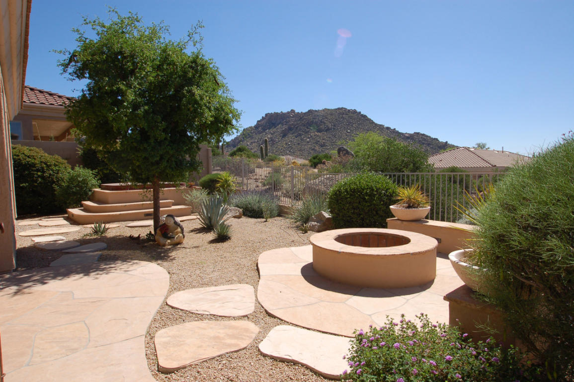 Super Arizona home in Troon Village backs and sides to Natural Area Open Space. Enjoy Troon Mt. views and desert vistas from your back patio which features an above ground spa, built-in BBQ, & firepit. Popular Great Room with gas fireplace is open to kitchen for easy entertaining. Split plan with Master on one end & guest suite with private bath on the other end. Den/Office with floor to ceiling built-ins. Master and Great Rooms have beamed ceilings. Additional features -shutters throughout, S/S appliances, & flagstone decking front & back. Refrigerator, washer, dryer, & water softener stay with home. No interior steps. The views and location are very special!!