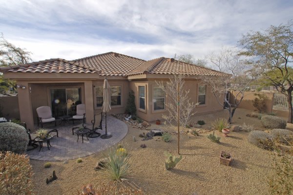3 Bedroom/Den, 2 Bath home has spacious family/kitchen with large island, pantry, lots of cabinets and breakfast room. Great backyard with mountains views backing and siding to NAOS. Extra wide lot with room for 3rd car garage. Not bank owned or short sale. Legend Trail amenities include Community Center, 2 pools, Spa, Tennis courts, fitness center, and golf course.