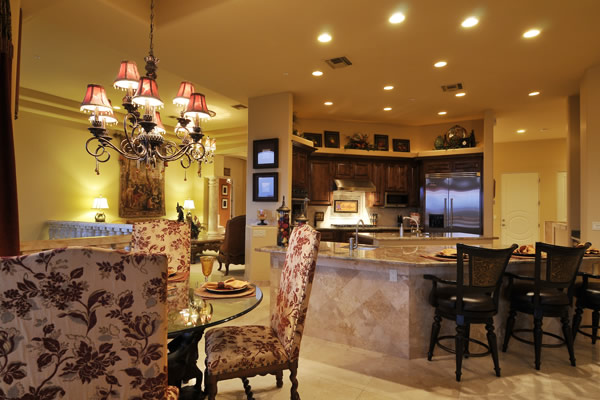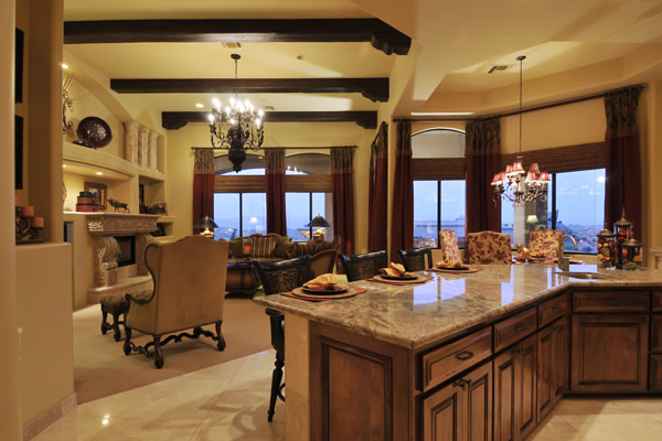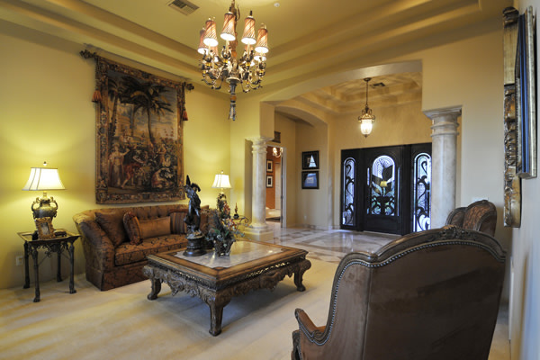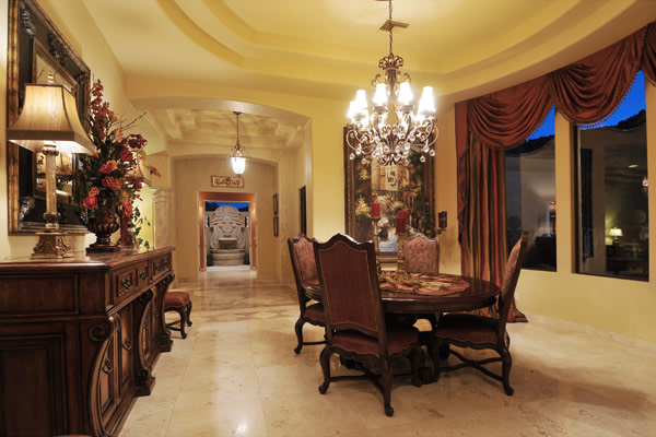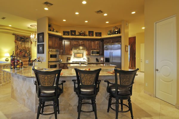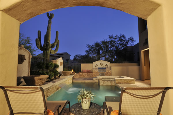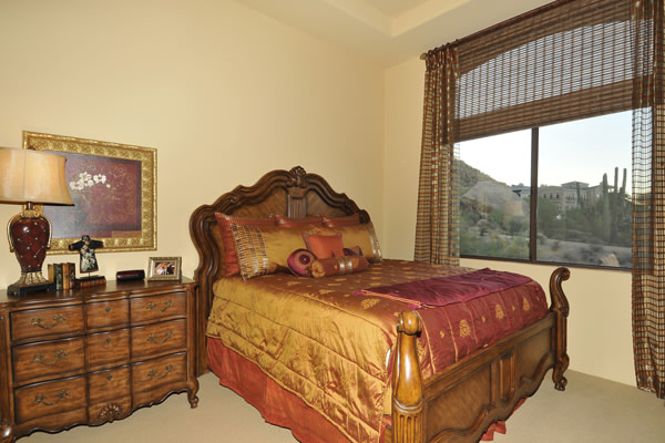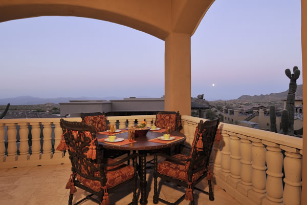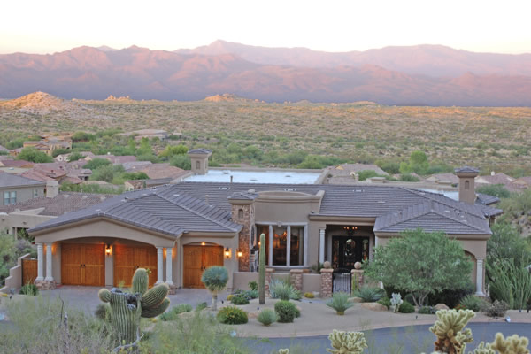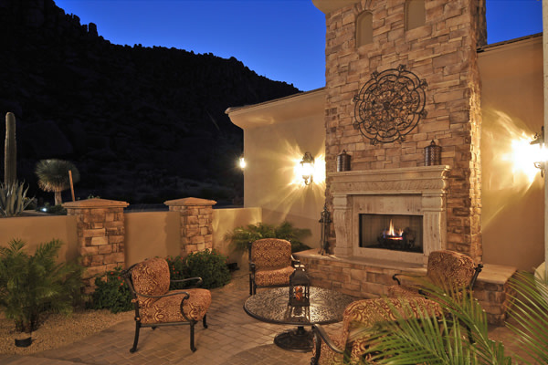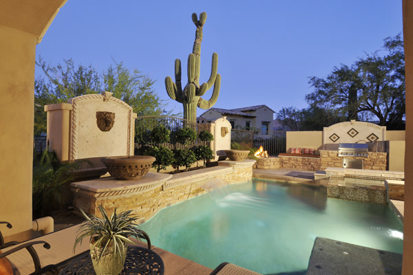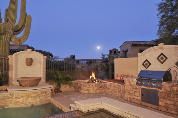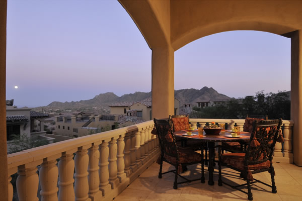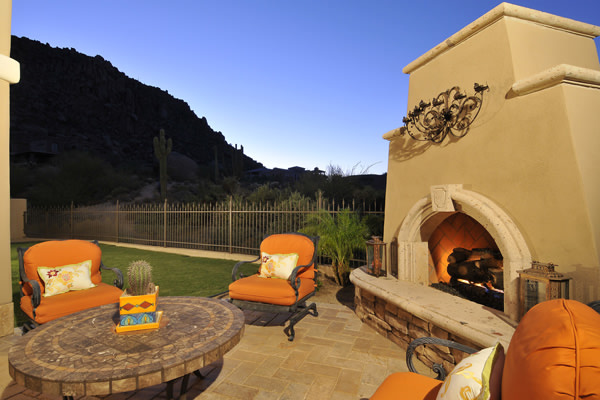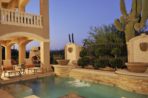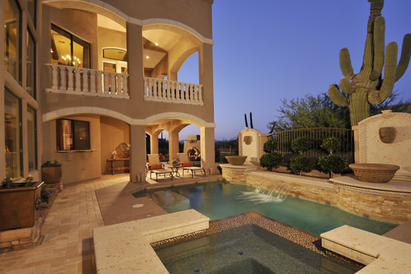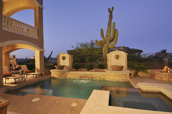 2004 Tuscan home in guard gated Troon Village has expansive views of the McDowells & Troon Mountain. Gorgeous designer home with over $200k in recent upgrades. Meticulous landscaping shows the incredible pride of ownership that flows throughout. Exquisite high-end furnishings can be purchased separately. Enter front courtyard to an inviting seating area by a cantera fireplace with brick pavers. Upstairs (street level) – Living/Dining, Kitchen opens to Family room with wood beams – balcony with seating & views, Master Suite, & guest bedroom with bath. Master has fountain, fireplace, & jetted tub with fireplace Downstairs – Recreation room, Kitchen/bar, & 2 guest bedrooms each with baths. 24″ travertine, 5 fireplaces, granite, & stacked stone. Spectacular outdoor living with designer pool & spa, seating area with fireplace, & grassy areas