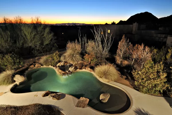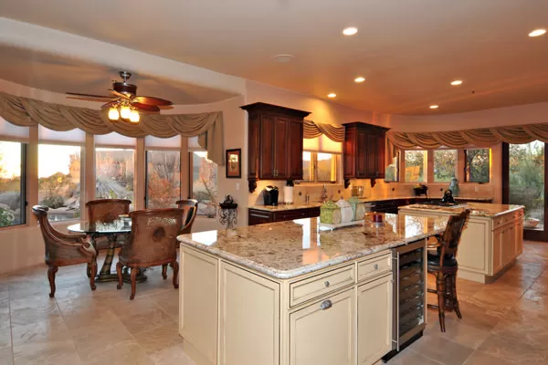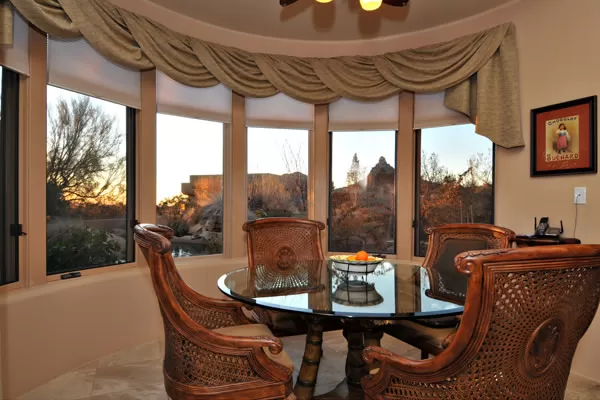 Stunning custom Salcito home in guard gated Windy Walk has been remodeled and has a special ambiance & warmth found in few homes. Quiet cul-de-sac lot has terrific Pinnacle Peak and city light views. Home features fabulous Master Suite with endless views, wet bar, & sitting area with cozy fireplace. 3 guest suites each with a private bath. This totally new kitchen is top-notch and ready for someone that loves to entertain & cook. Kitchen features 2 large islands – one for prep/cooking & one for baking. Dacor double wall ovens, warming drawers, gas cook-top, & loads of room for all your kitchen needs. Great Room has new ledger stone fireplace & entertainment center. Large oversized covered patio allows for spectacular outdoor living by the salt water Pebble-Tec pool.