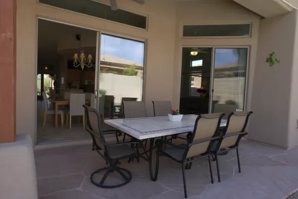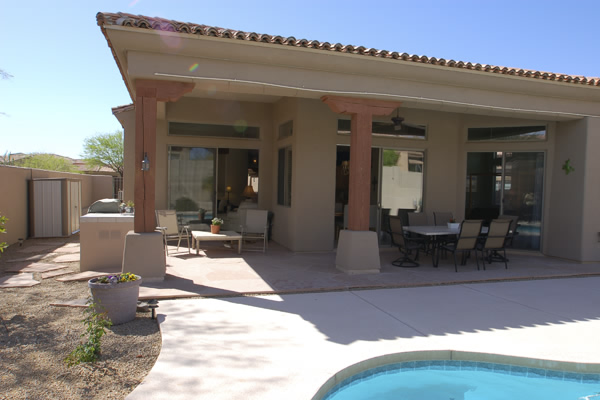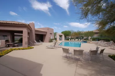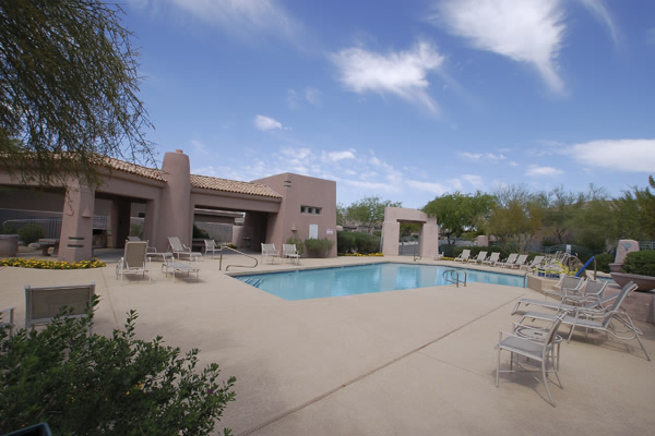 Lovely Crown Point home in guard gated Raptor Retreat at Grayhawk. Cul-de-sac lot sides large common area for added privacy. Beautiful patio with refreshing salt water pool & built-in BBQ to enjoy the great AZ weather. Great Room floor plan for todays living. Inside dramatic 12 ceilings with large windows make this floor plan open & spacious. Home featuRes2,242 sf, 2 master suites (2nd master great for your visitors), den, & 2.5 baths. Kitchen featuReslarge island with seating open to the Great Room with gas fireplace. Community heated Pool/Spa, tennis courts, walking trails, shopping, & Starbucks within walking distance for your enjoyment. Granite countertops.