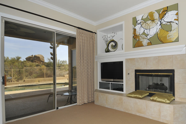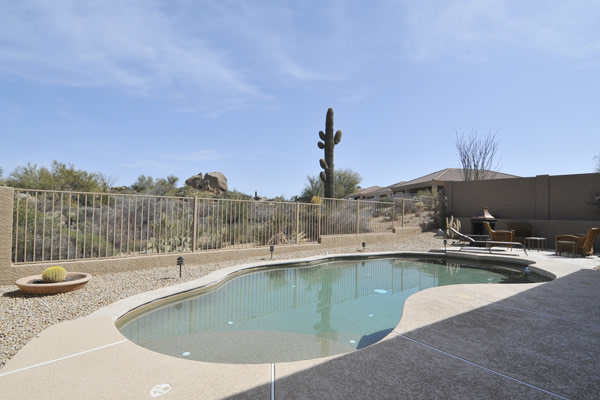 Troon Village home offers outstanding views of the Mountains, incredible boulder outcroppings, & desert floor. Enjoy entertaining outdoors by the heated, self-cleaning, Pebble-Tec pool with new tumbled stone patio. Inside this charming home, the floor plan has been expanded to include an office. Home features a great room floor plan, 2 Bedrooms, Office, expanded laundry, & 2 Baths. Recent updates include renovated pool with new motor, granite counter tops in kitchen, crown molding, exterior & interior painted, entertainment center added, new hot water heater, newer oversized A/C, Kinetico water softener & R/O, custom window treatments, shutters, bronze hardware in baths, epoxy garage floors, wood/maple trim added to niches & pony wall, & alarm system. Home backs to large expanse of NAOS for great views & privacy!