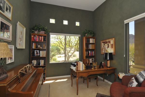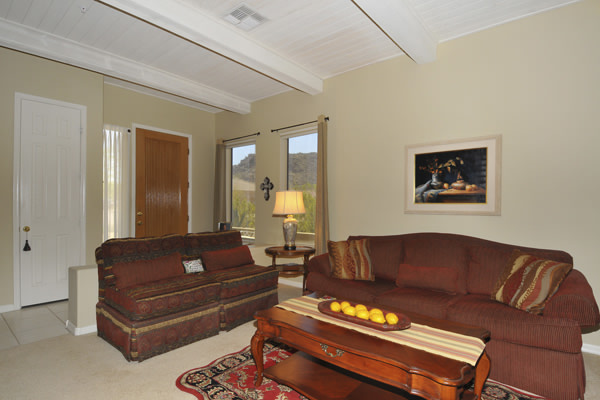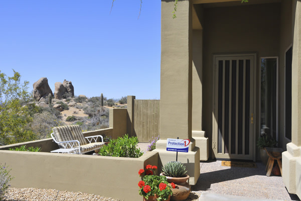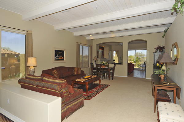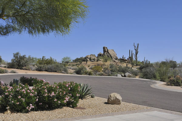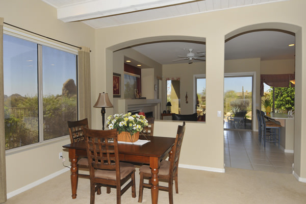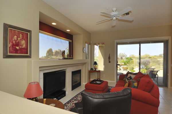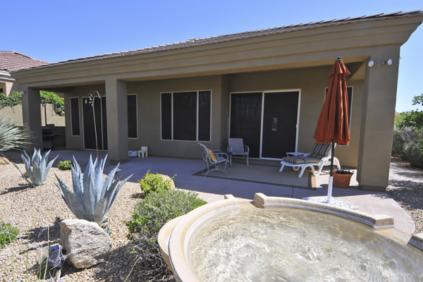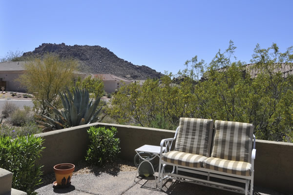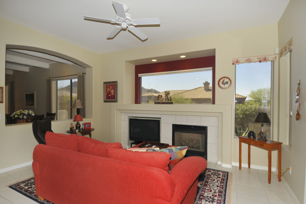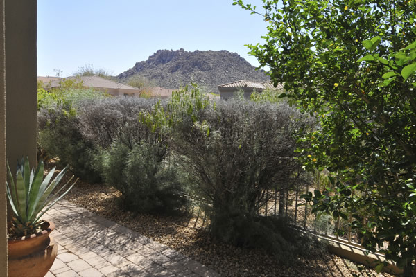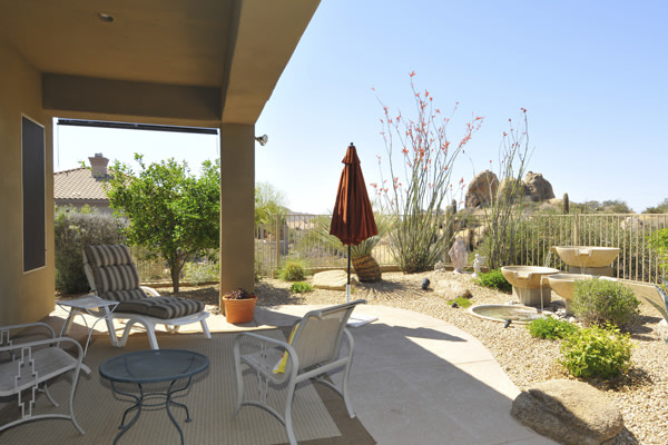 Fantastic desert & mountain views in all directions from this charming home in Troon Village near the Four Seasons resort. Aggregate walk & expanded front porch to enjoy the Troon Mountain views. Beautiful extended patio outback with flowing fountains, pavers, and neat landscaping. Home sides & backs to Natural Area Open Space. Huge boulder outcroppings in addition to the mountain views add to the ambiance of the private outdoor living space. Upgraded tongue & groove ceiling with beams, upgraded exterior stucco finish, gas line for BBQ, & low E windows with sunscreens. Floor plan featuResopen split plan with formal living/dining room, kitchen opens to family room with fireplace, 3 bedrooms + den/office. Well cared for home with one owner.