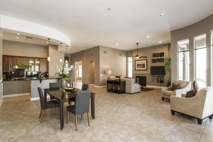 Exceptional greatroom floor plan in Guard Gated Raptor Retreat Golf Course neighborhood of Grayhawk. This spacious 2 bed+Den+Casita/3.5 bath home is upgraded T/O featuring gourmet kitchen w/polished & honed granite slab counters,large islands & breakfast bar w/pendant lighting, stainless steal Dacor appliances w/double ovens, warming drawer & gas cooktop as well as SS subzero frig,Fisher & Paykel dishwasher drawers & wine frig. Inviting large master bedroom & sitting room w/recently remodeled master bath. Large private & gated entry courtyard w/Casita access. Resort style backyard w/pool & spa w/waterfalls,large paver patio & raised Canterra Stone patio for Mtn. Views w/built-in BBQ & firepit great for entertaining. Great schools & parks,close to world class golf/dining/shopping & 101 frwy